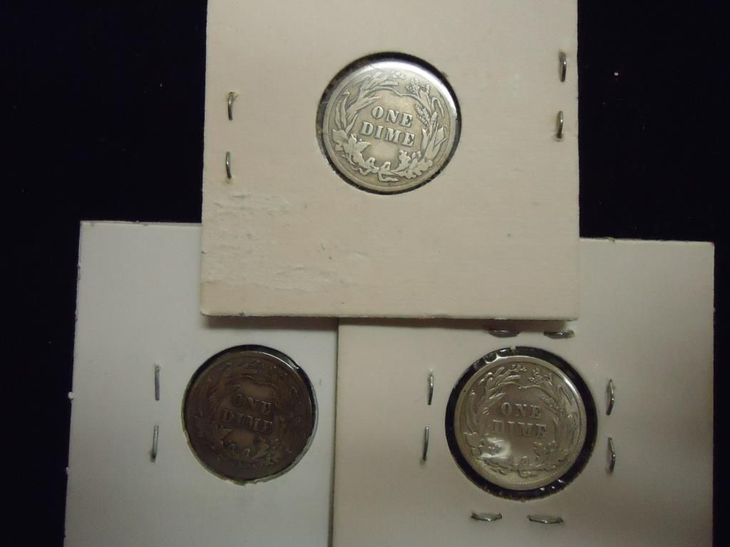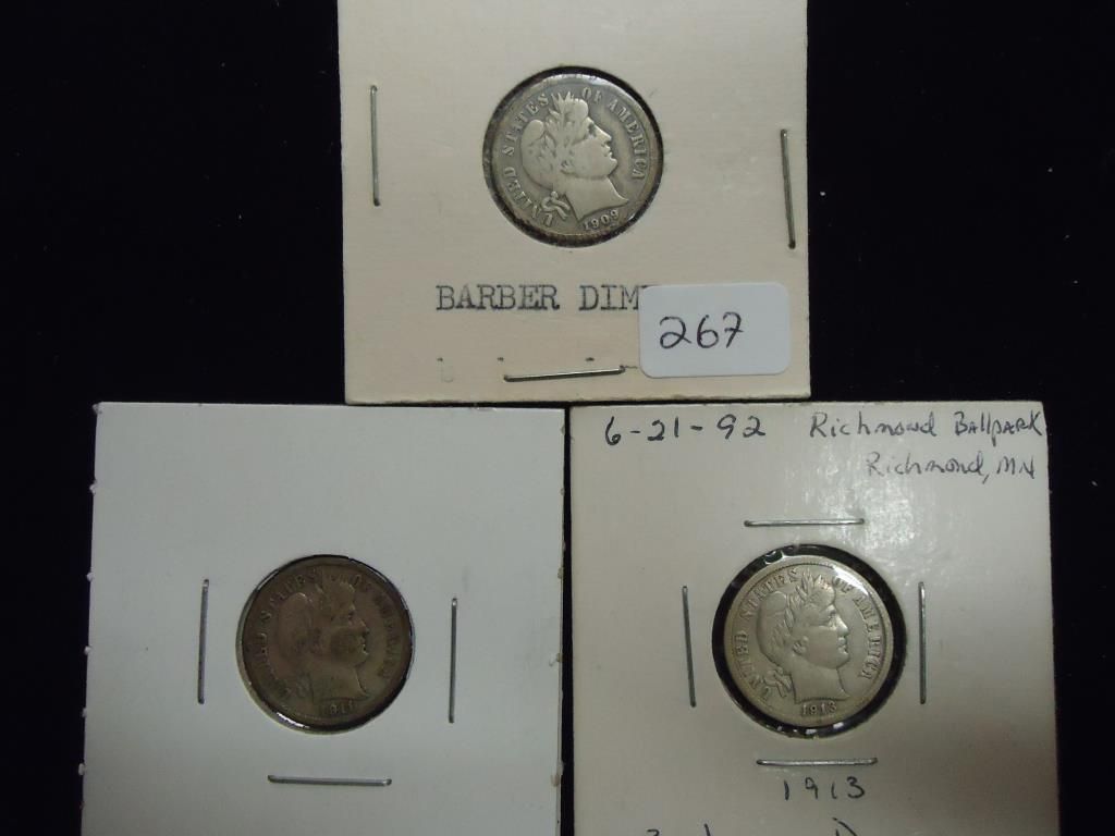1909 FINE, 1911-S FINE & 1913 (VF) BARBER DIMES