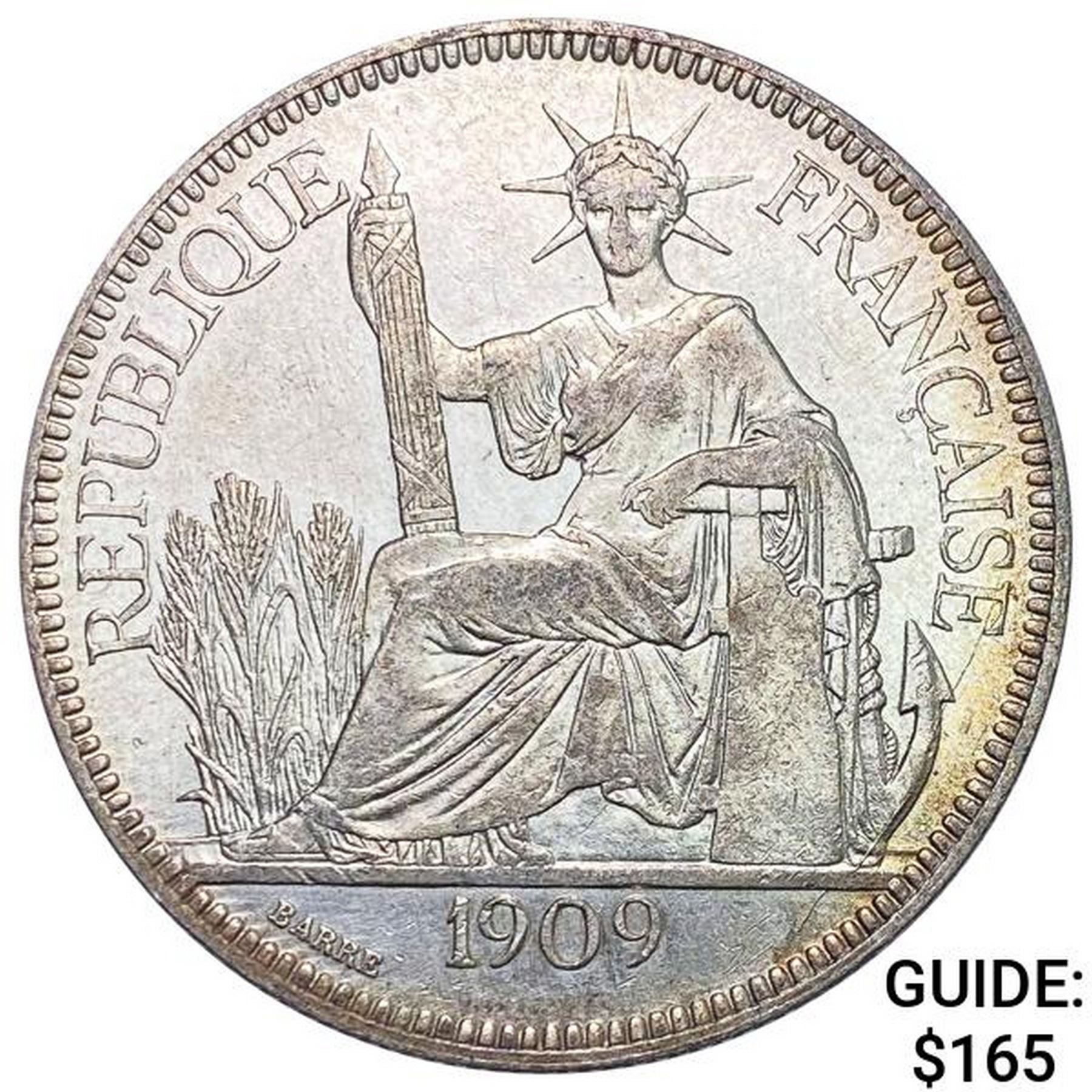 1909 French Indochina 1 Piastre CLOSELY UNCIRCULATED