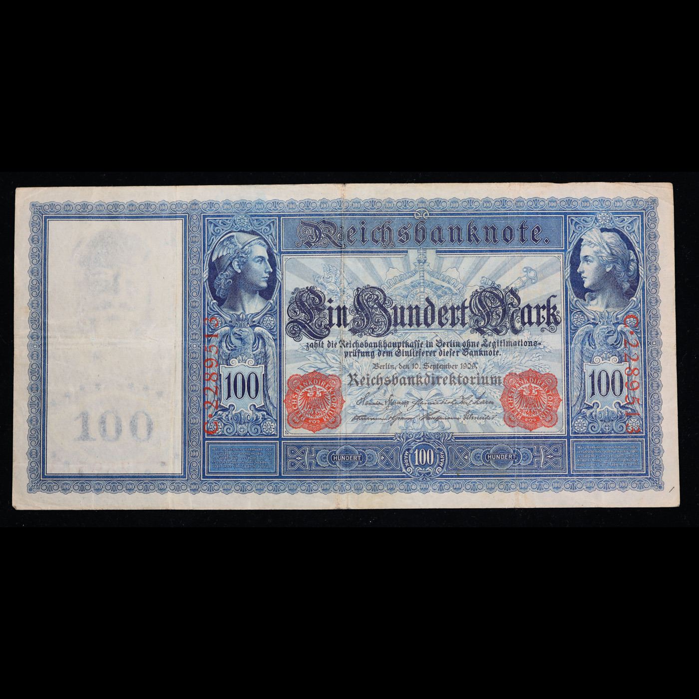 1909 Germany (Empire) 100 Marks Banknote P# 38 Grades Select CU. From 1871 to 1914 the German Mark was known as the "Goldmark", as it was on the gold standard. During WWI, like most nations, Germany removed the gold backing and ceased circulation of gold coins. The Goldmark was the culmination of years of effort put into unifying the currency of Germany.