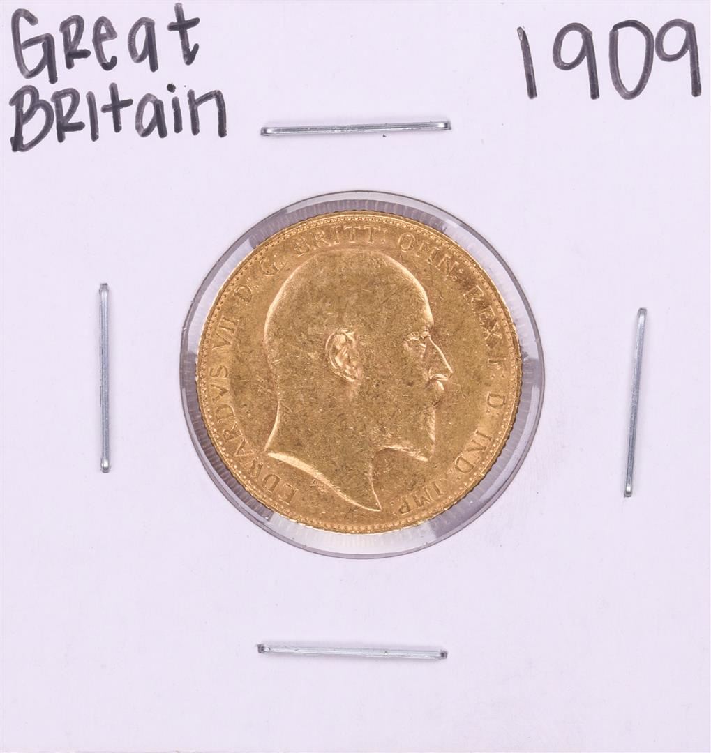 One 1909 Great Britain Sovereign Gold Coin.