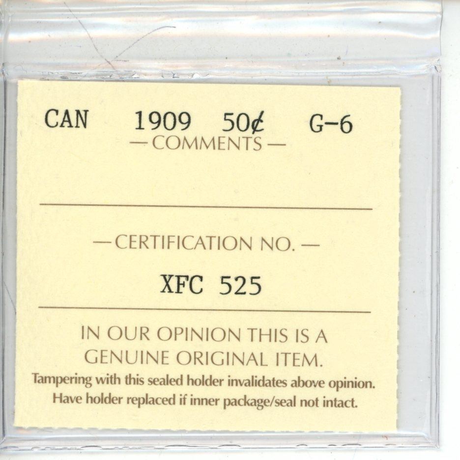 1909 ICCS Graded - Canadian Fifty Cent - G6