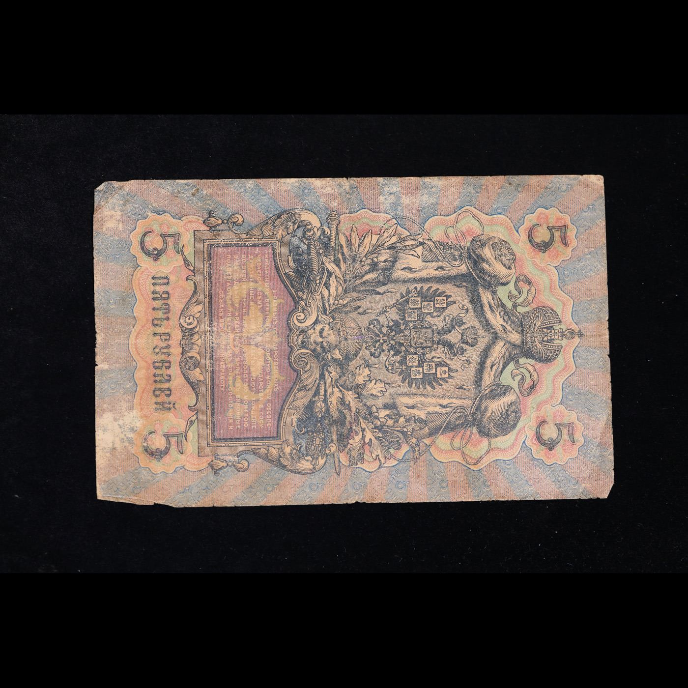 1909 Imerpial Russia 5 Rubles Note P# 10B Grades vf+. Up for auction we have a beautiful, ornate Imperial Ruble note from the final decade of the Russian Empire under Tsar Nicholas II, which managed to survive through the Russian Revolution and Civil War. These notes became relatively useless in the early Soviet period, due to hyperinflation and other factors, and many were lost or destroyed.