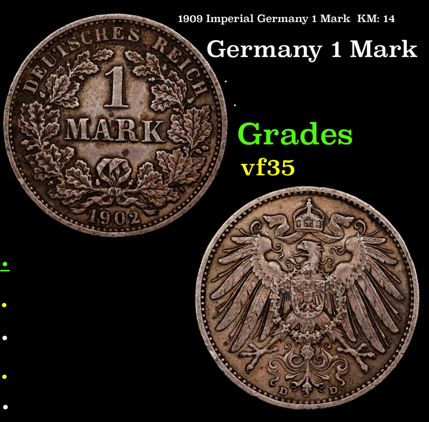 1909 Imperial Germany 1 Mark KM: 14 Grades vf++.
