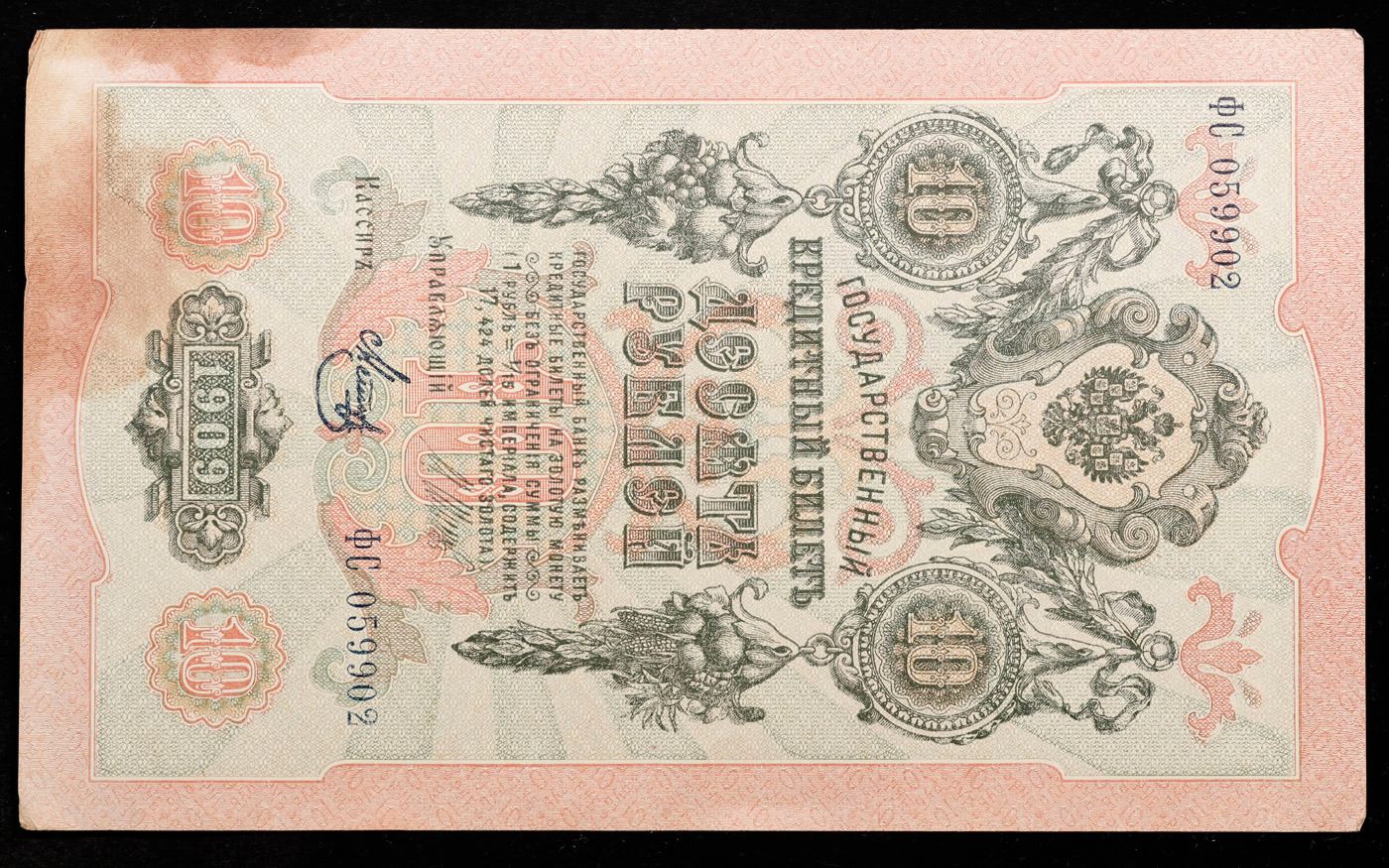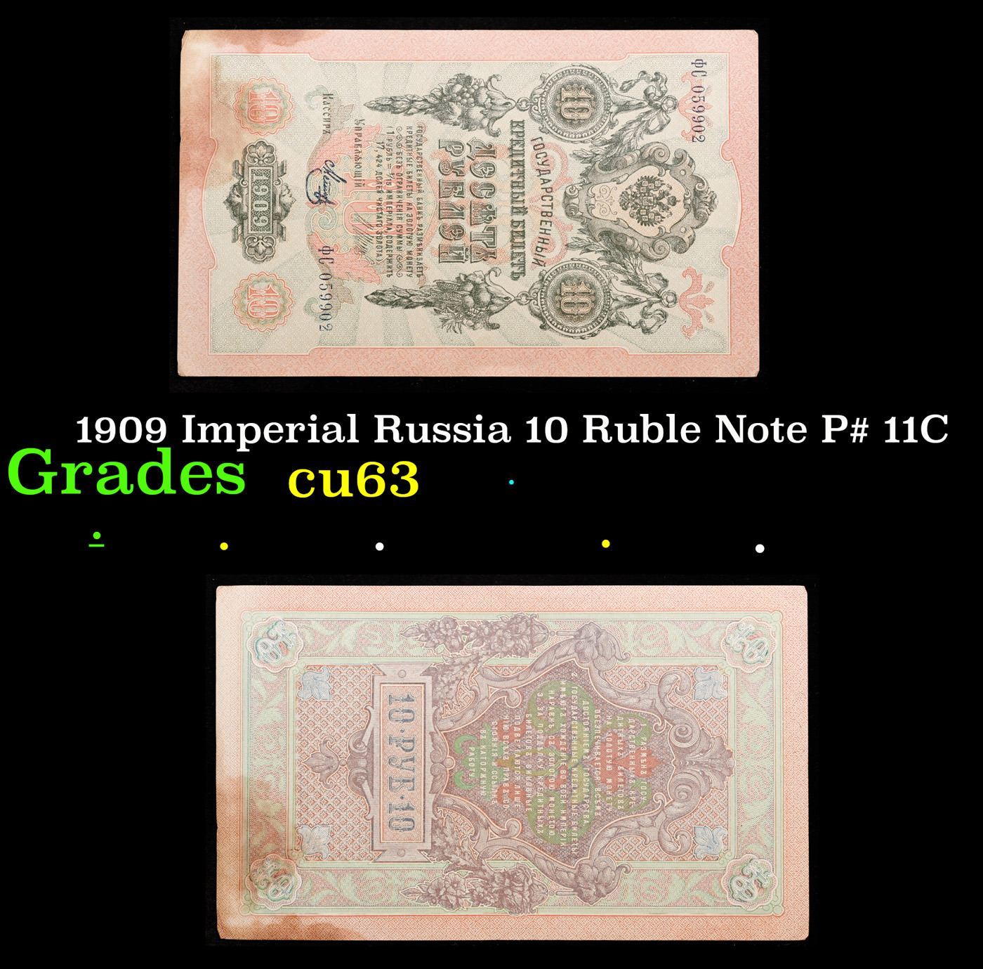 1909 Imperial Russia 10 Ruble Note P# 11C Grades Select CU.