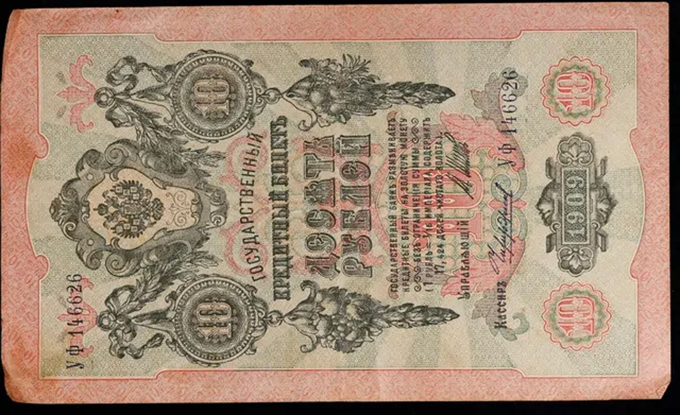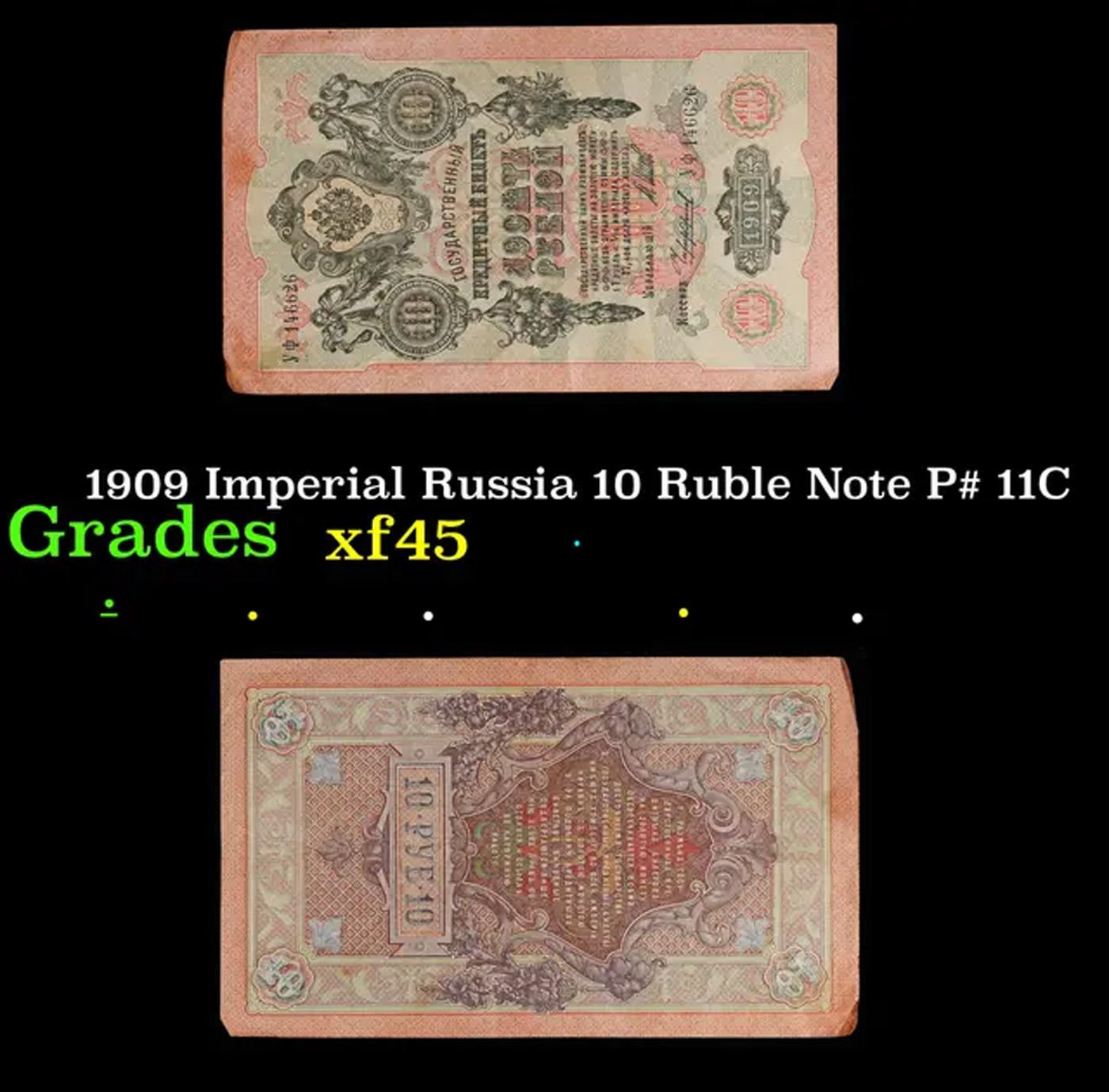 1909 Imperial Russia 10 Ruble Note P# 11C Grades xf+.