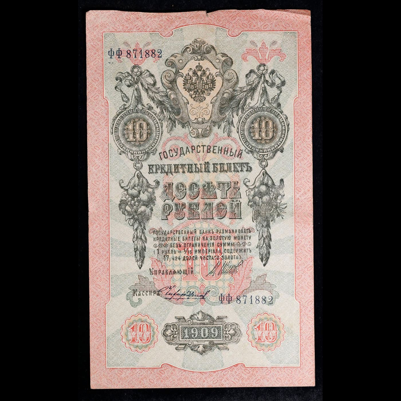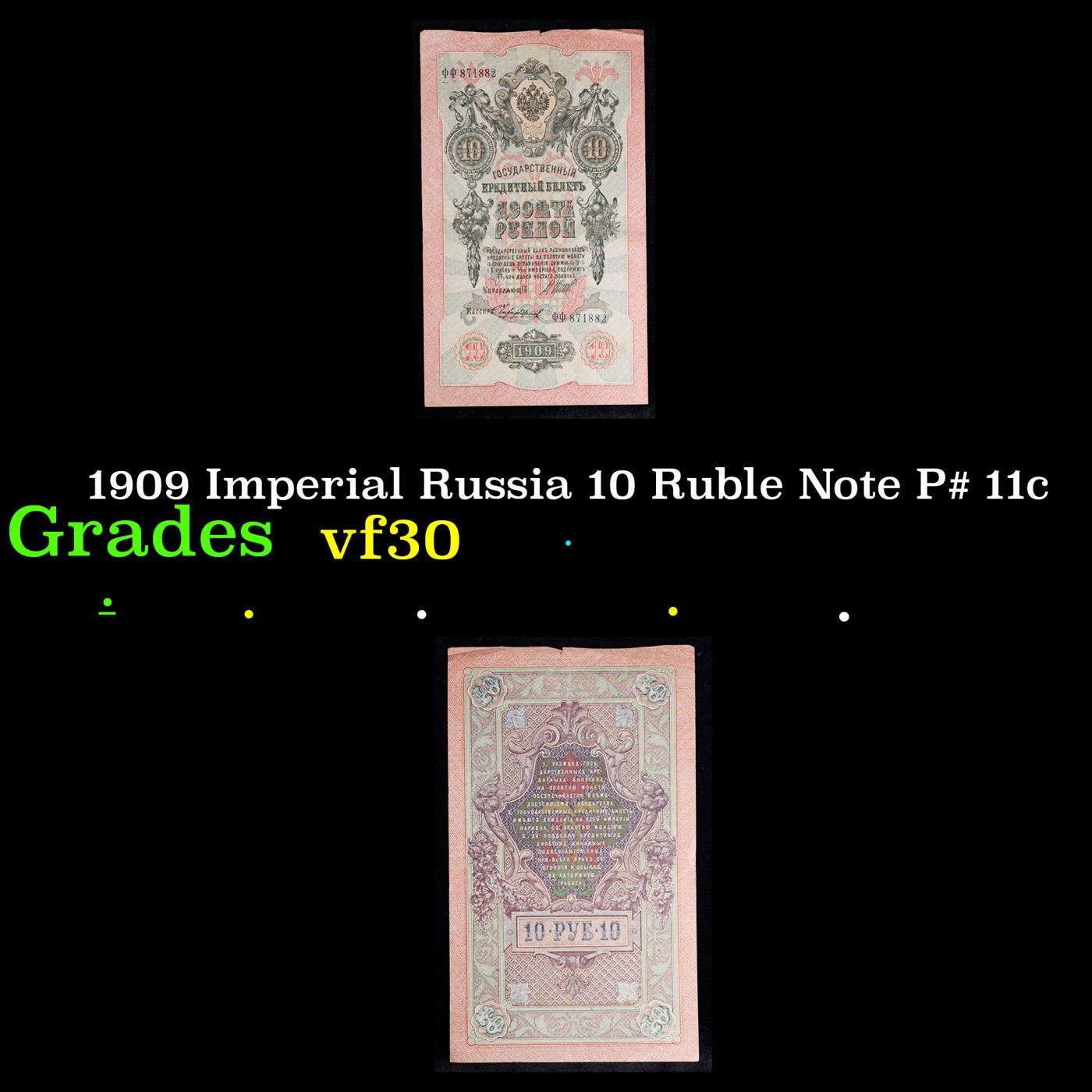 1909 Imperial Russia 10 Ruble Note P# 11c Grades vf++.