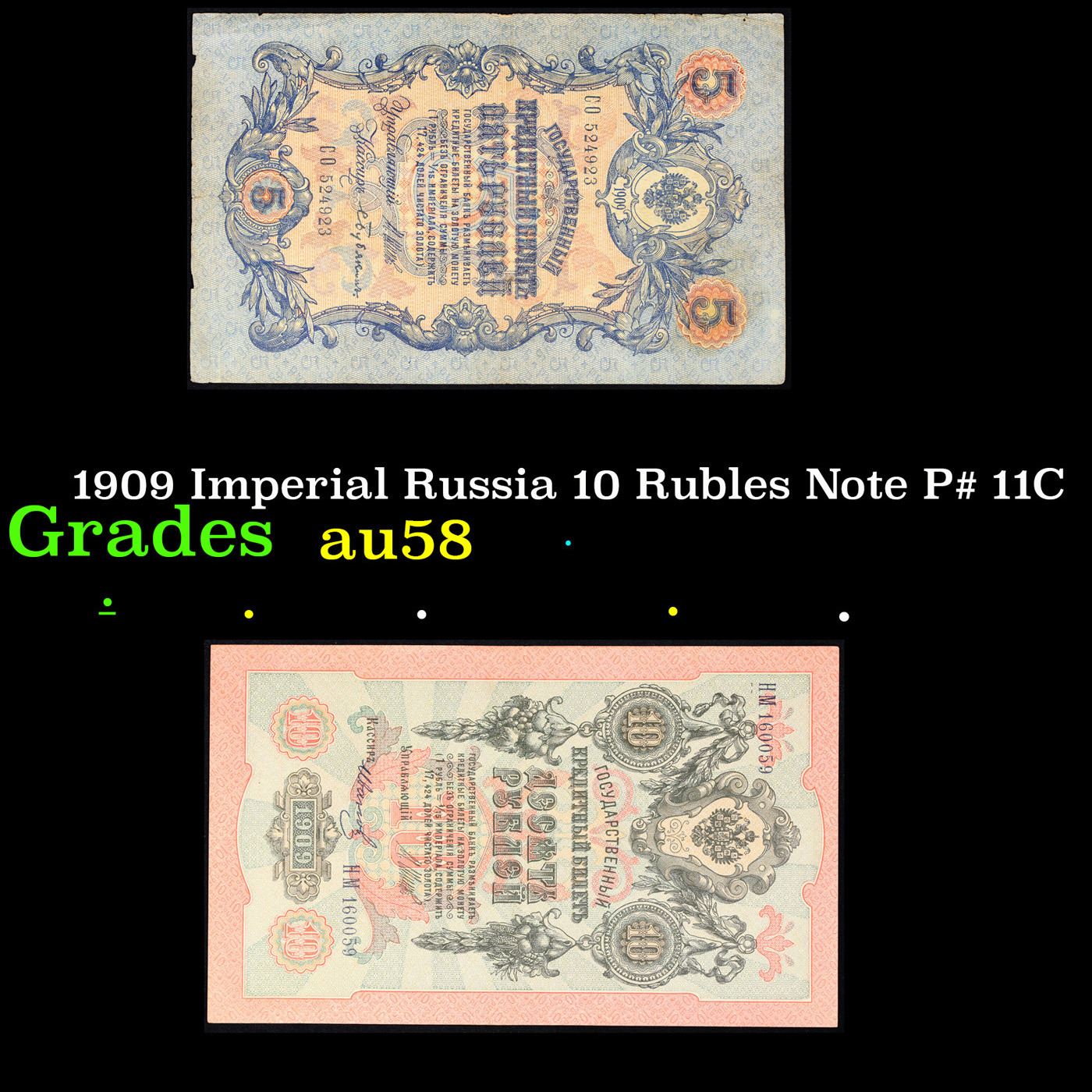 1909 Imperial Russia 10 Rubles Note P# 11C Grades Choice AU/BU Slider.