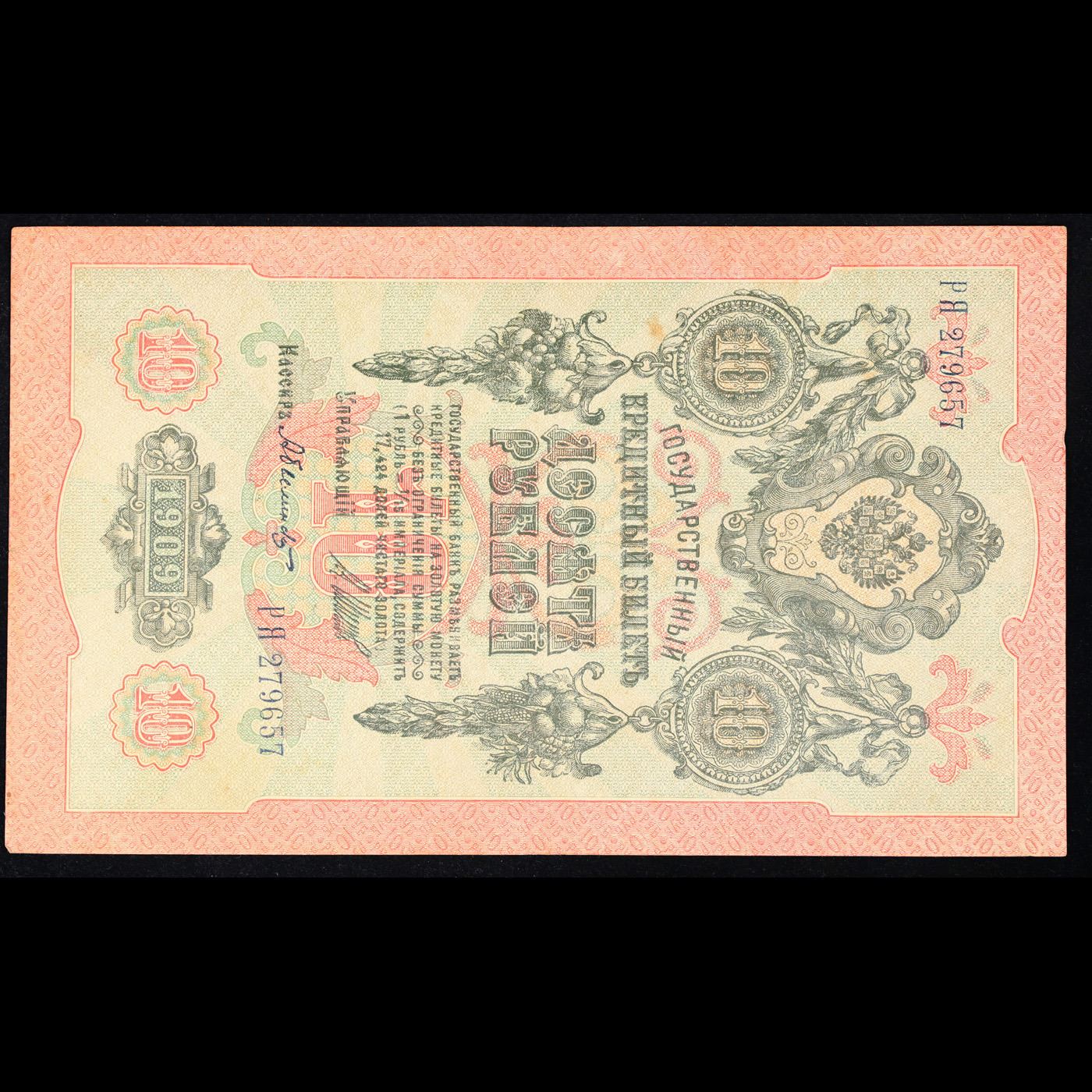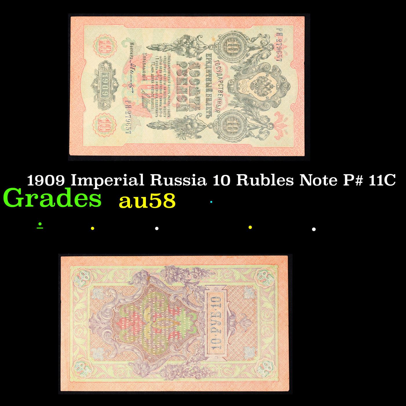 1909 Imperial Russia 10 Rubles Note P# 11C Grades Choice AU/BU Slider.