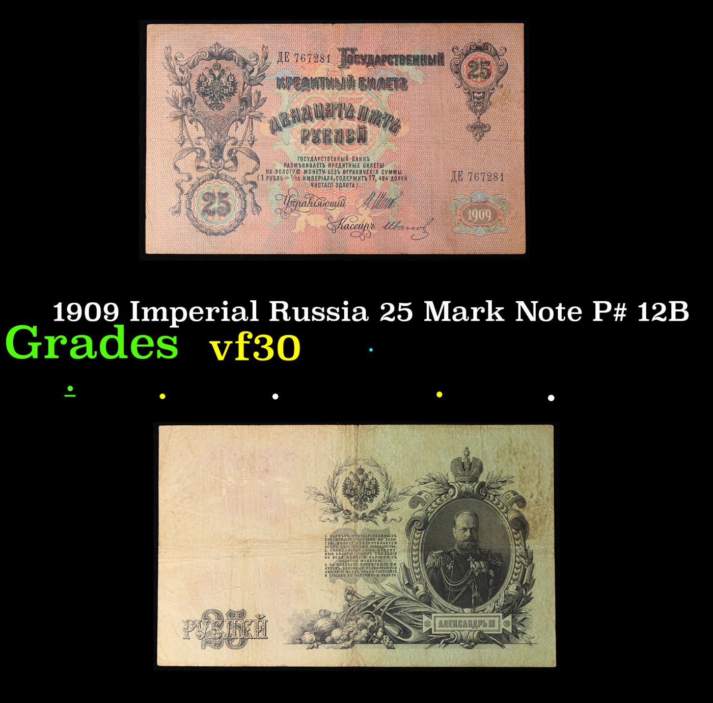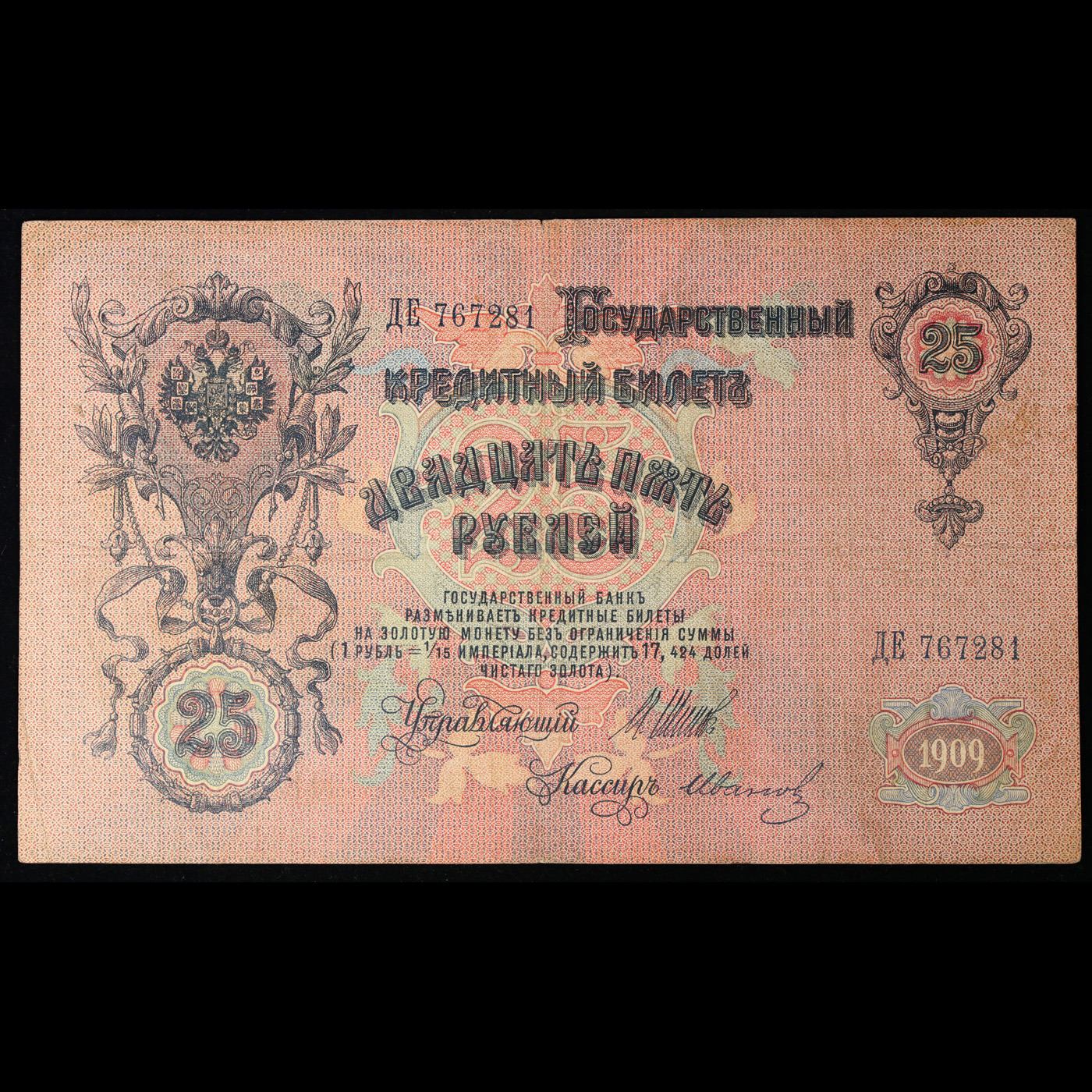 1909 Imperial Russia 25 Mark Note P# 12B Grades vf++.