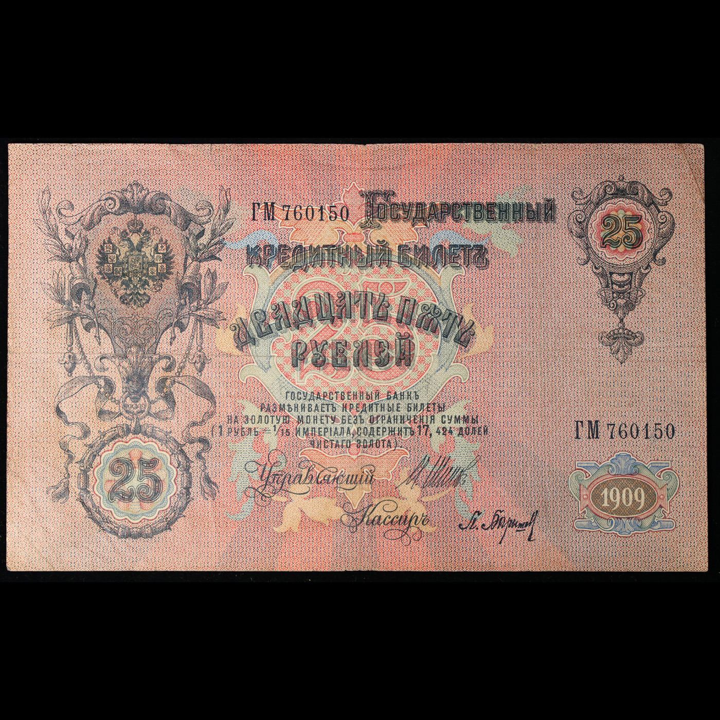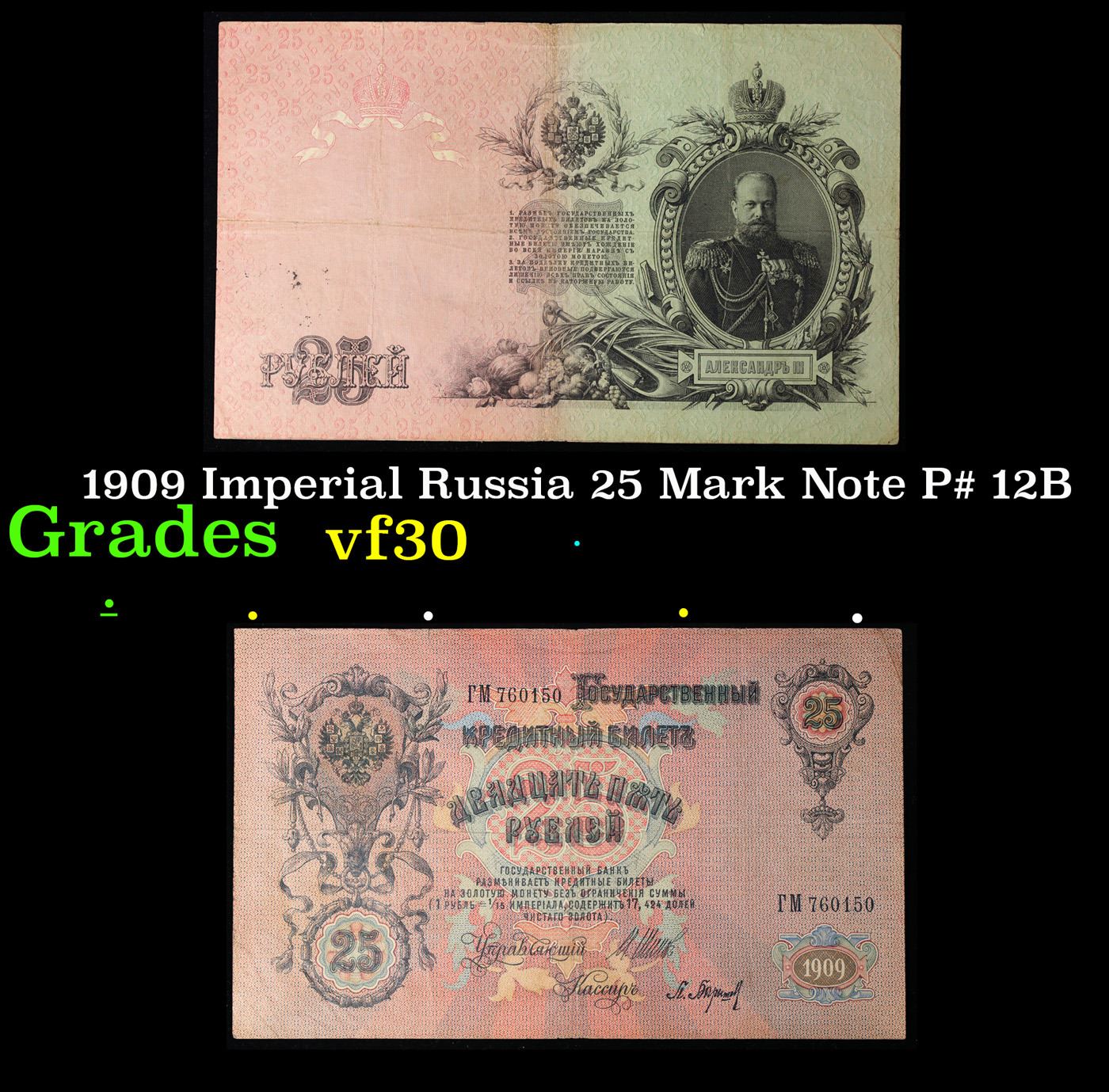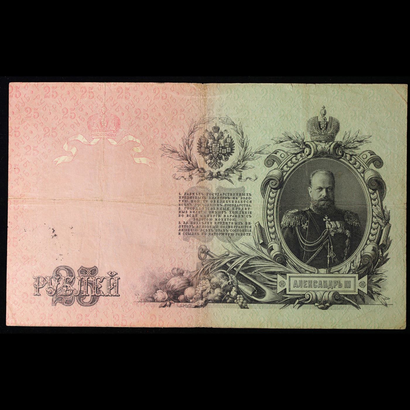 1909 Imperial Russia 25 Mark Note P# 12B Grades vf++.