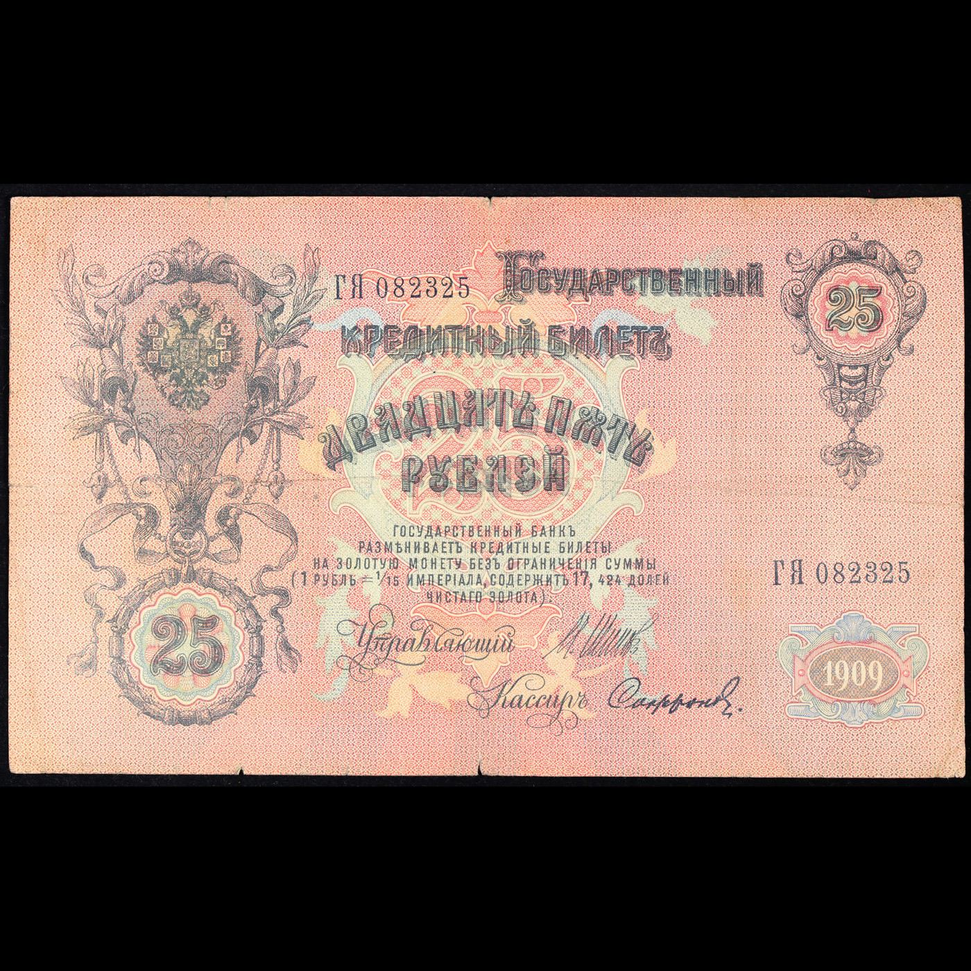 1909 Imperial Russia 25 Mark Note P# 12B Grades vf++.