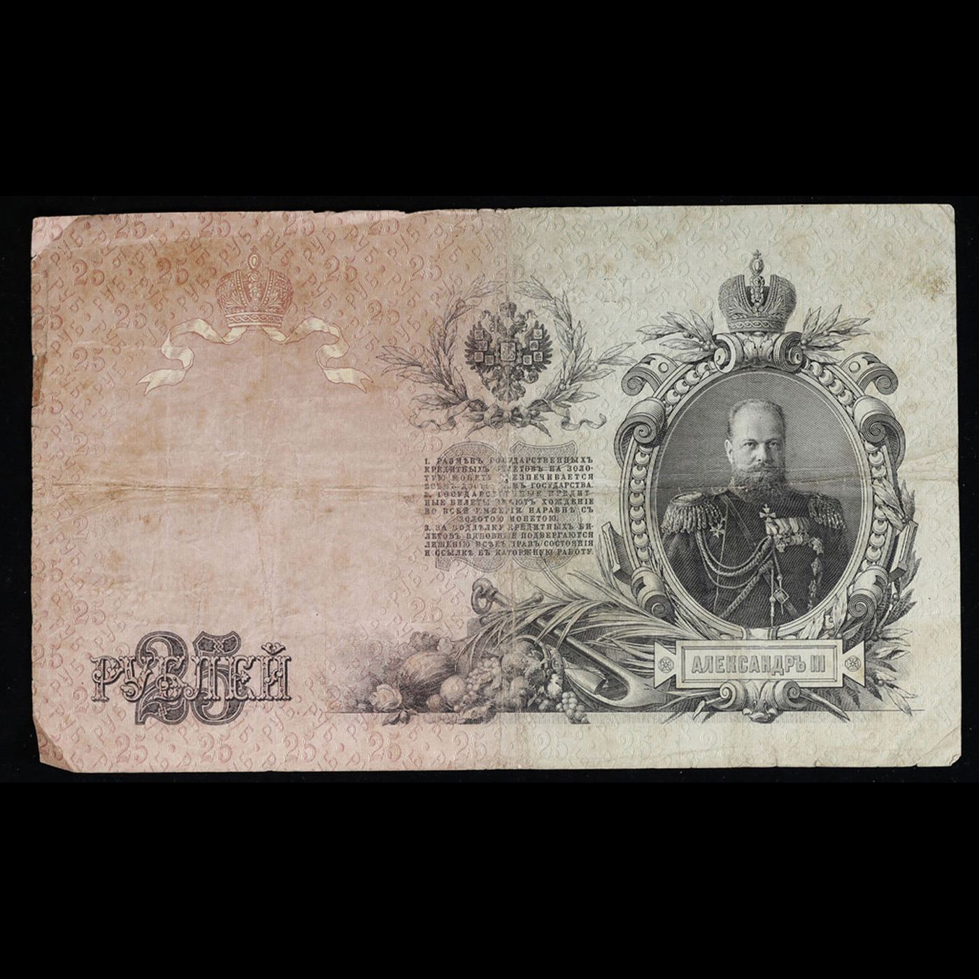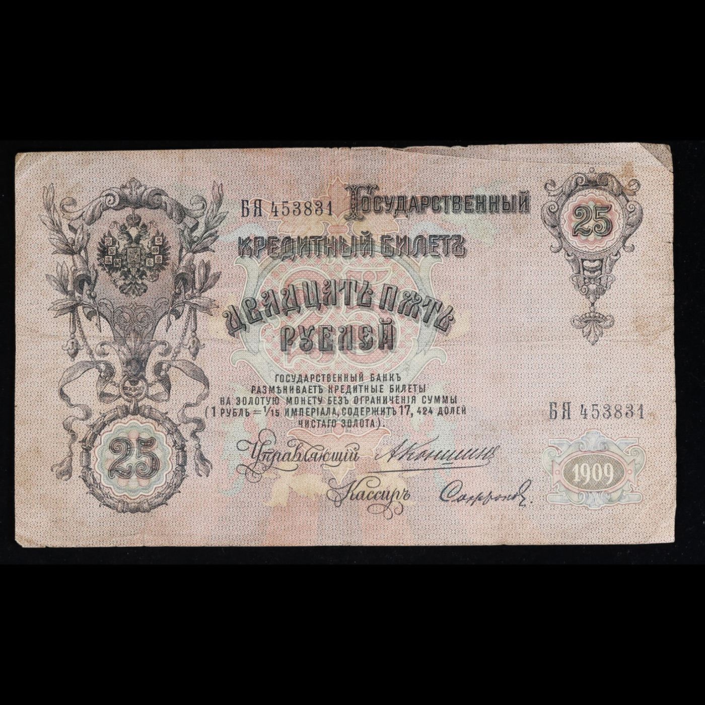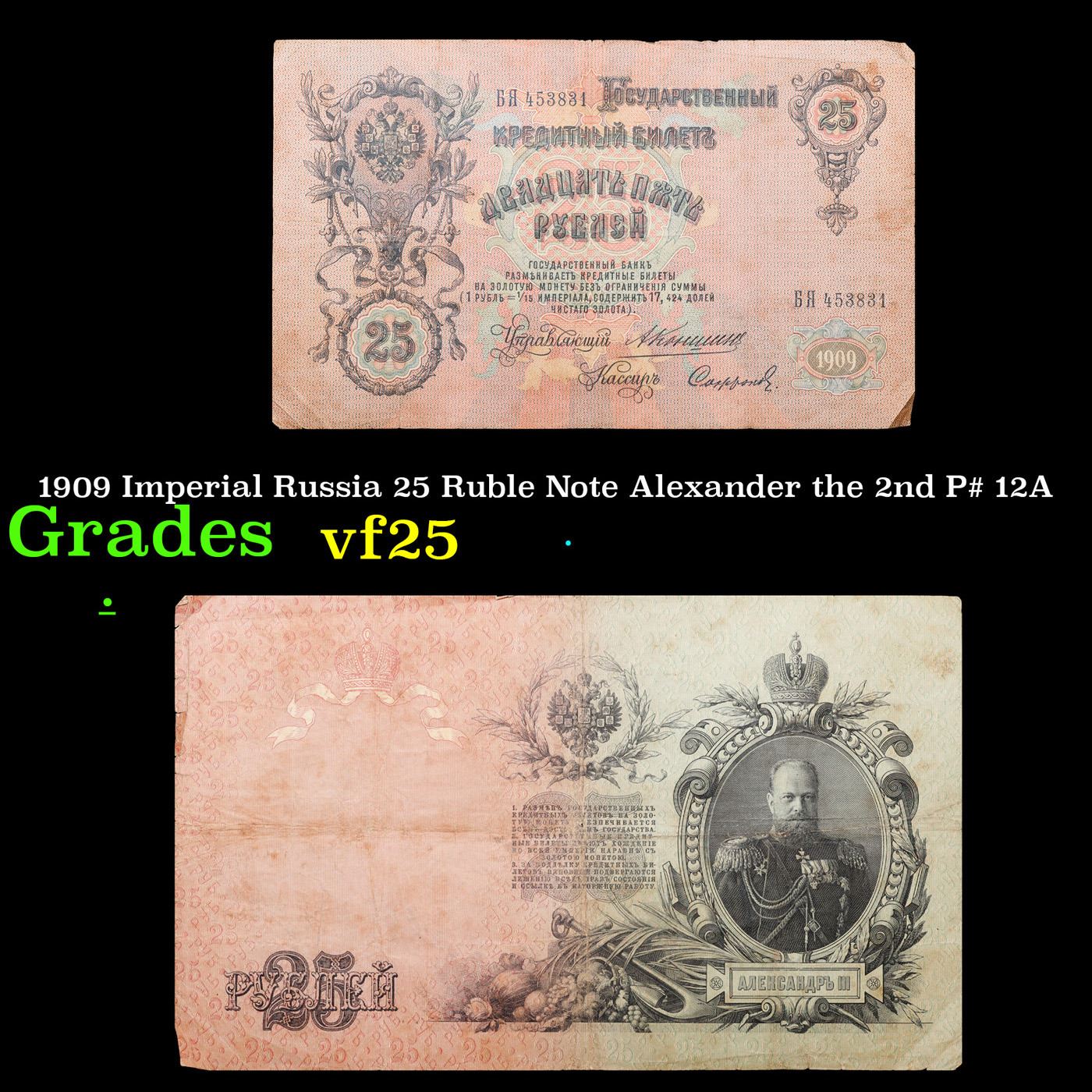1909 Imperial Russia 25 Ruble Note Alexander the 2nd P# 12A Grades vf+.