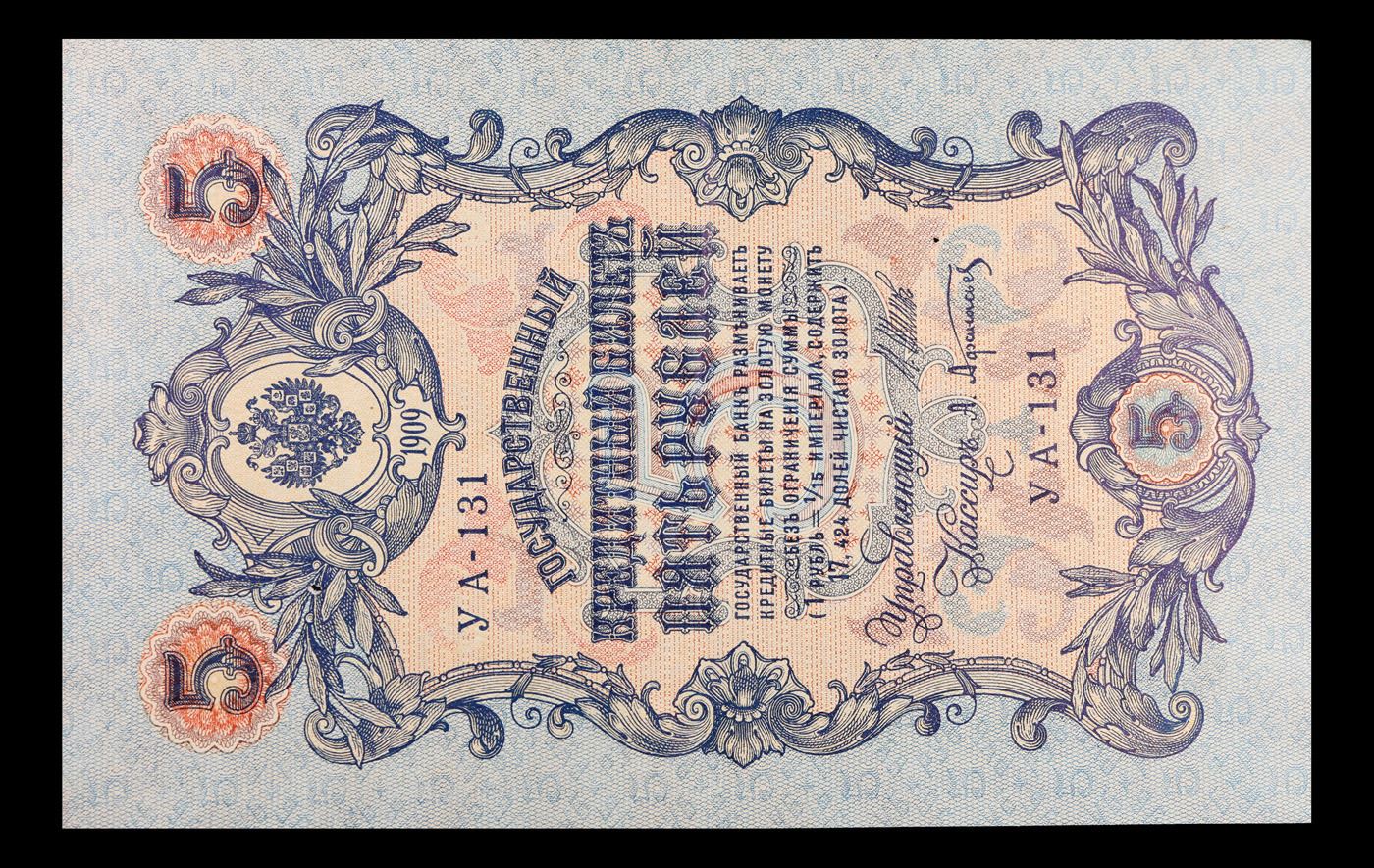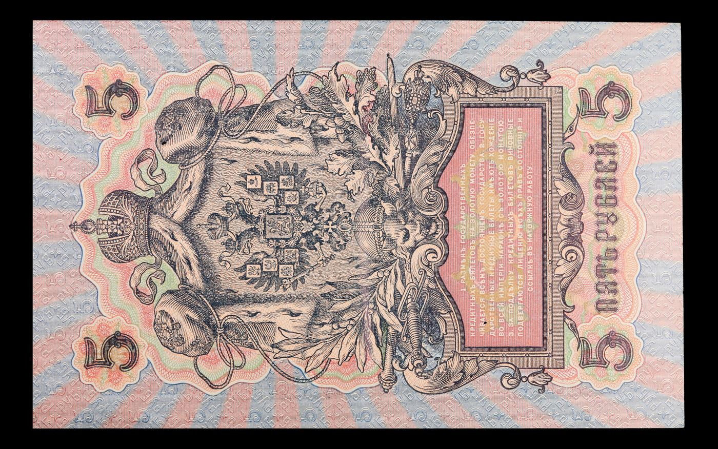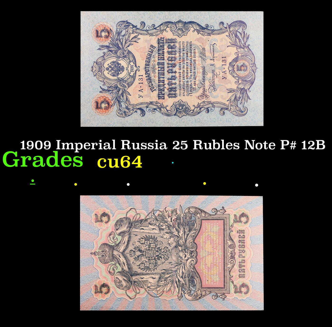 1909 Imperial Russia 25 Rubles Note P# 12B Grades Choice CU. Up for auction we have a beautiful, ornate Imperial Ruble note from the final decade of the Russian Empire under Tsar Nicholas II, which managed to survive through the Russian Revolution and Civil War. These notes became relatively useless in the early Soviet period, due to hyperinflation and other factors, and many were lost or destroyed.