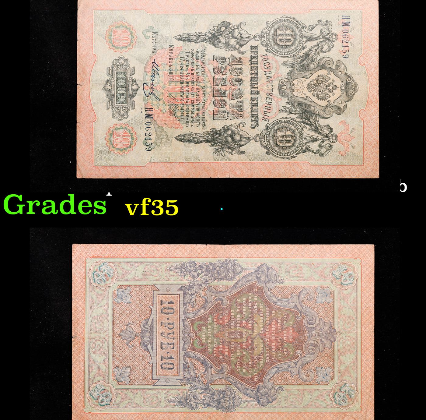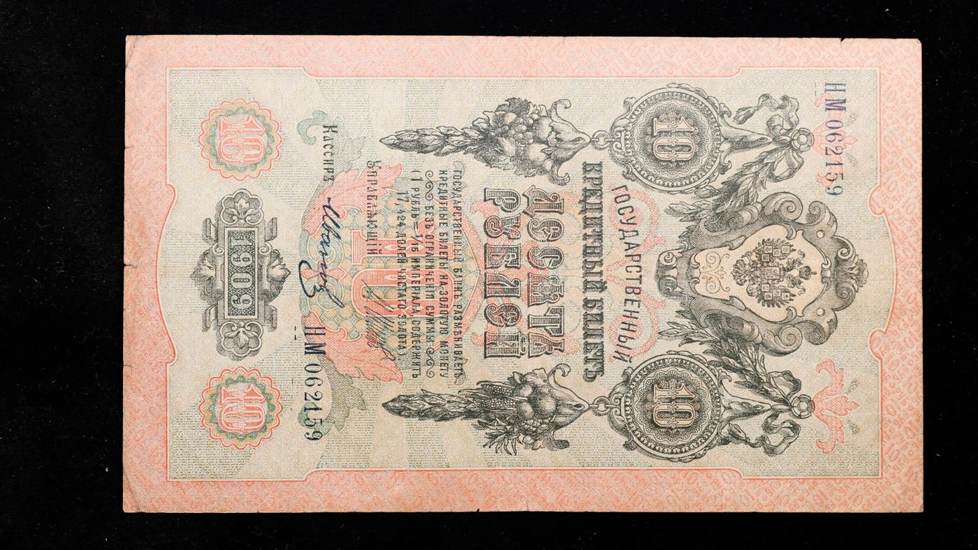 1909 Imperial Russia 5 Ruble Note P# 10b Grades vf++. Up for auction we have a beautiful, ornate Imperial Ruble note from the final decade of the Russian Empire under Tsar Nicholas II, which managed to survive through the Russian Revolution and Civil War. These notes became relatively useless in the early Soviet period, due to hyperinflation and other factors, and many were lost or destroyed.