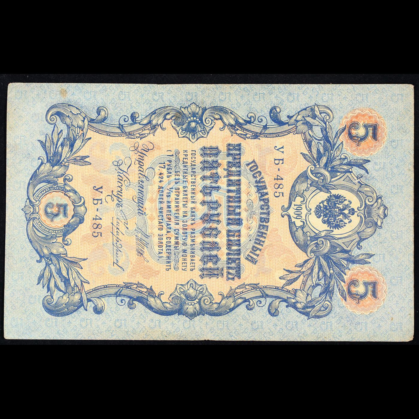 1909 Imperial Russia 5 Rubles Note P# 10B Grades xf+.
