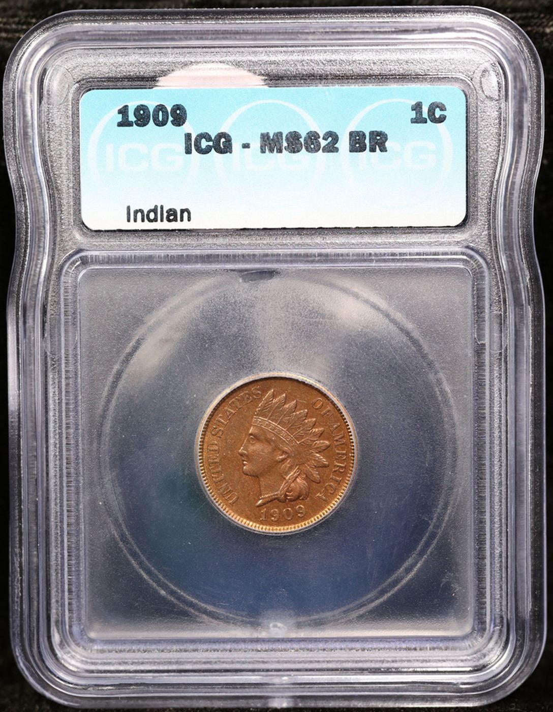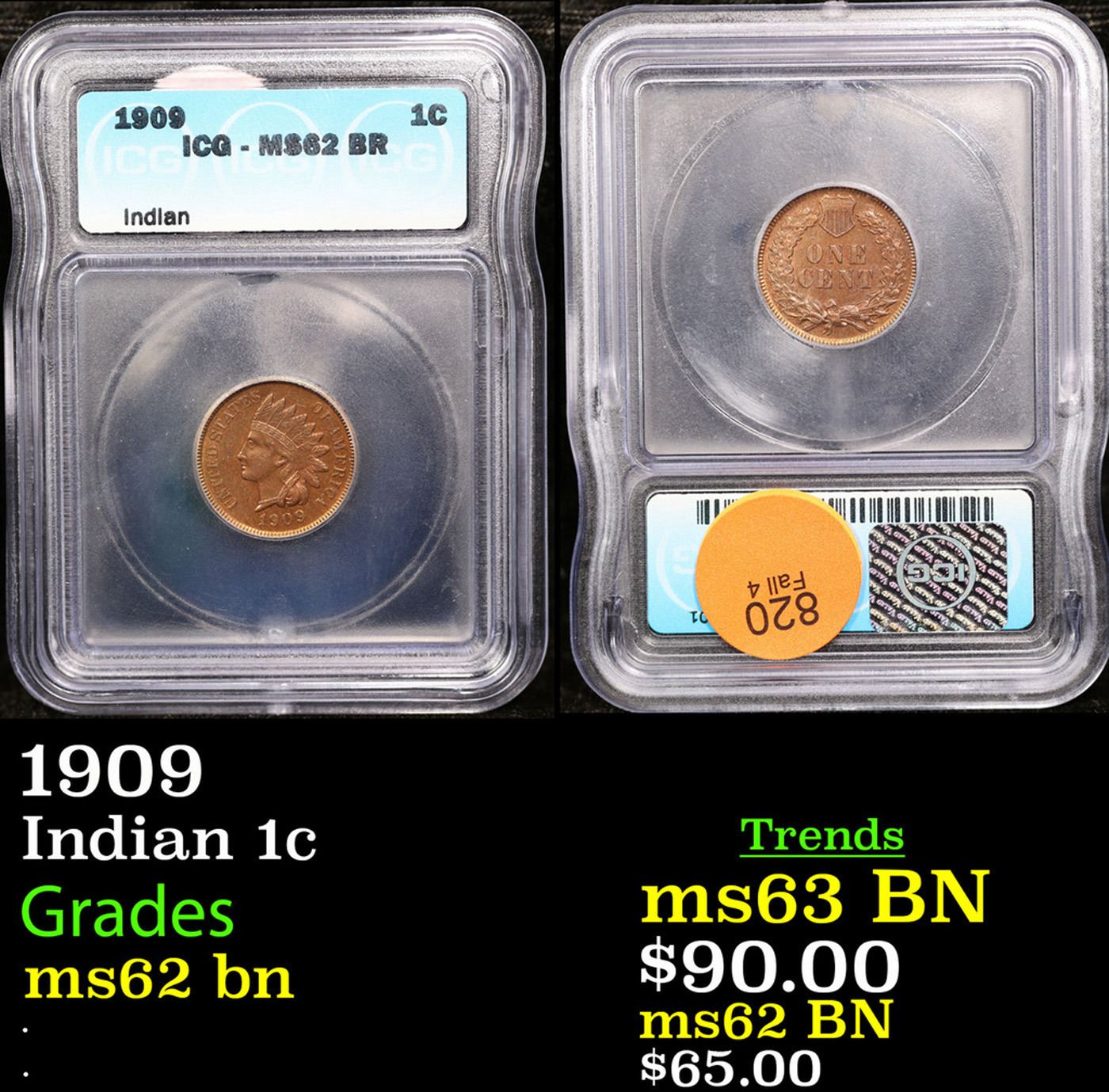 1909 Indian Cent 1c Graded ms62 bn By ICG.