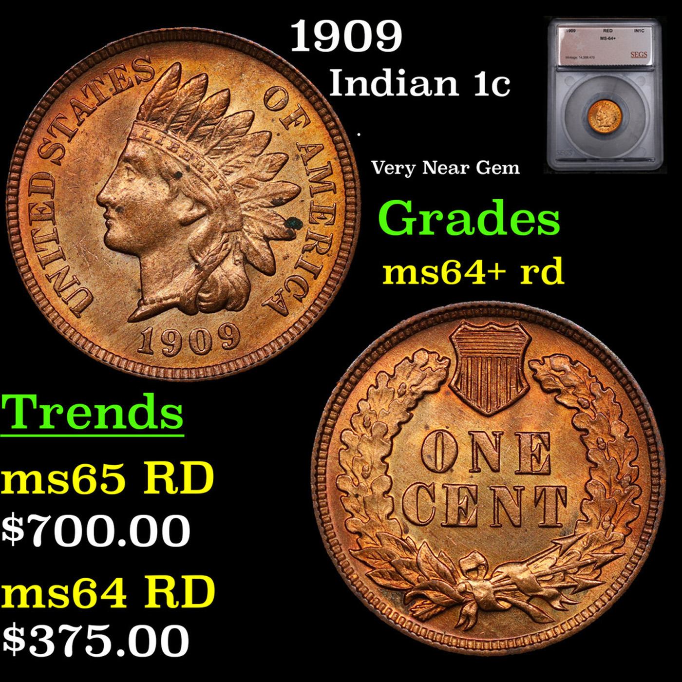 1909 Indian Cent 1c Graded ms64+ rd By SEGS.