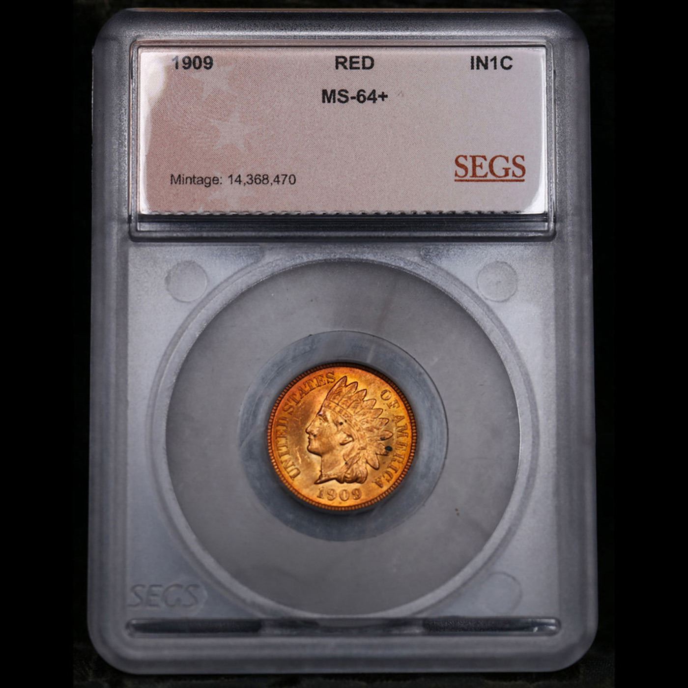 1909 Indian Cent 1c Graded ms64+ rd By SEGS.