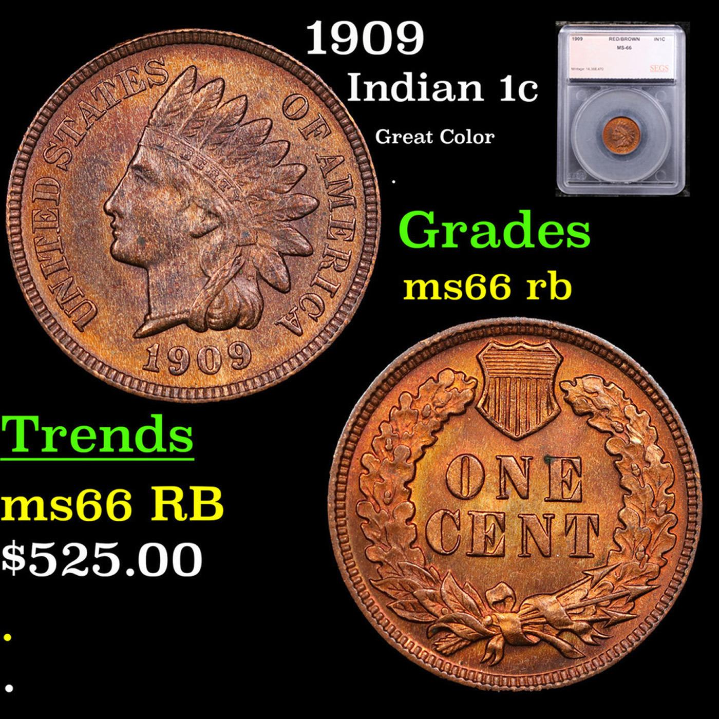 1909 Indian Cent 1c Graded ms66 rb By SEGS.