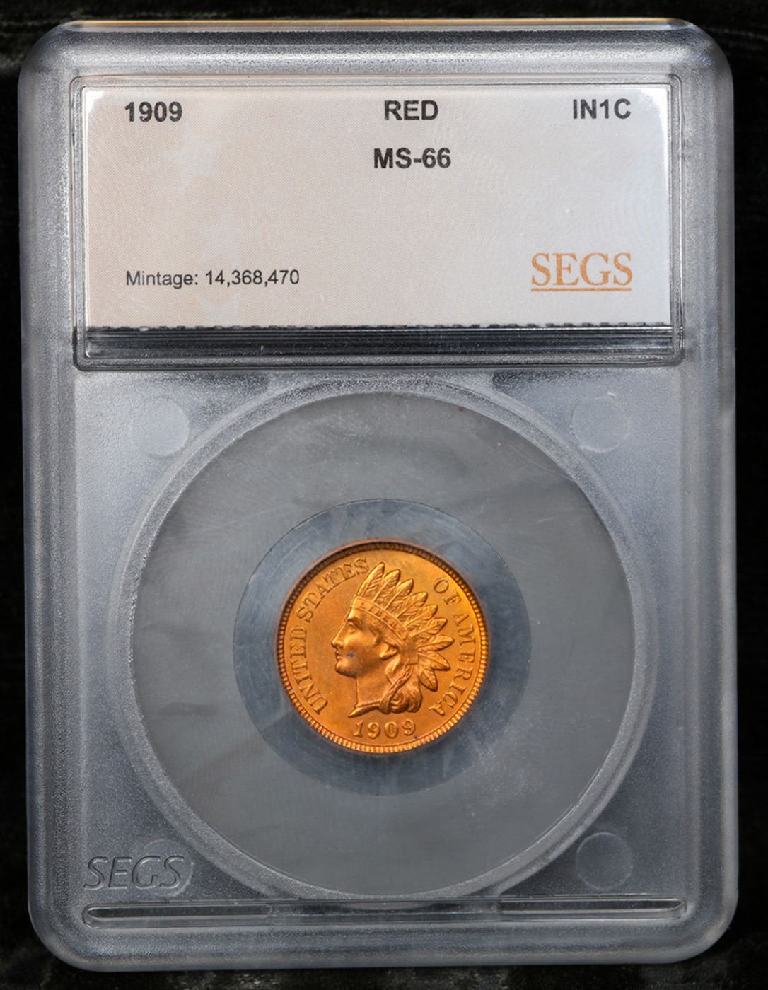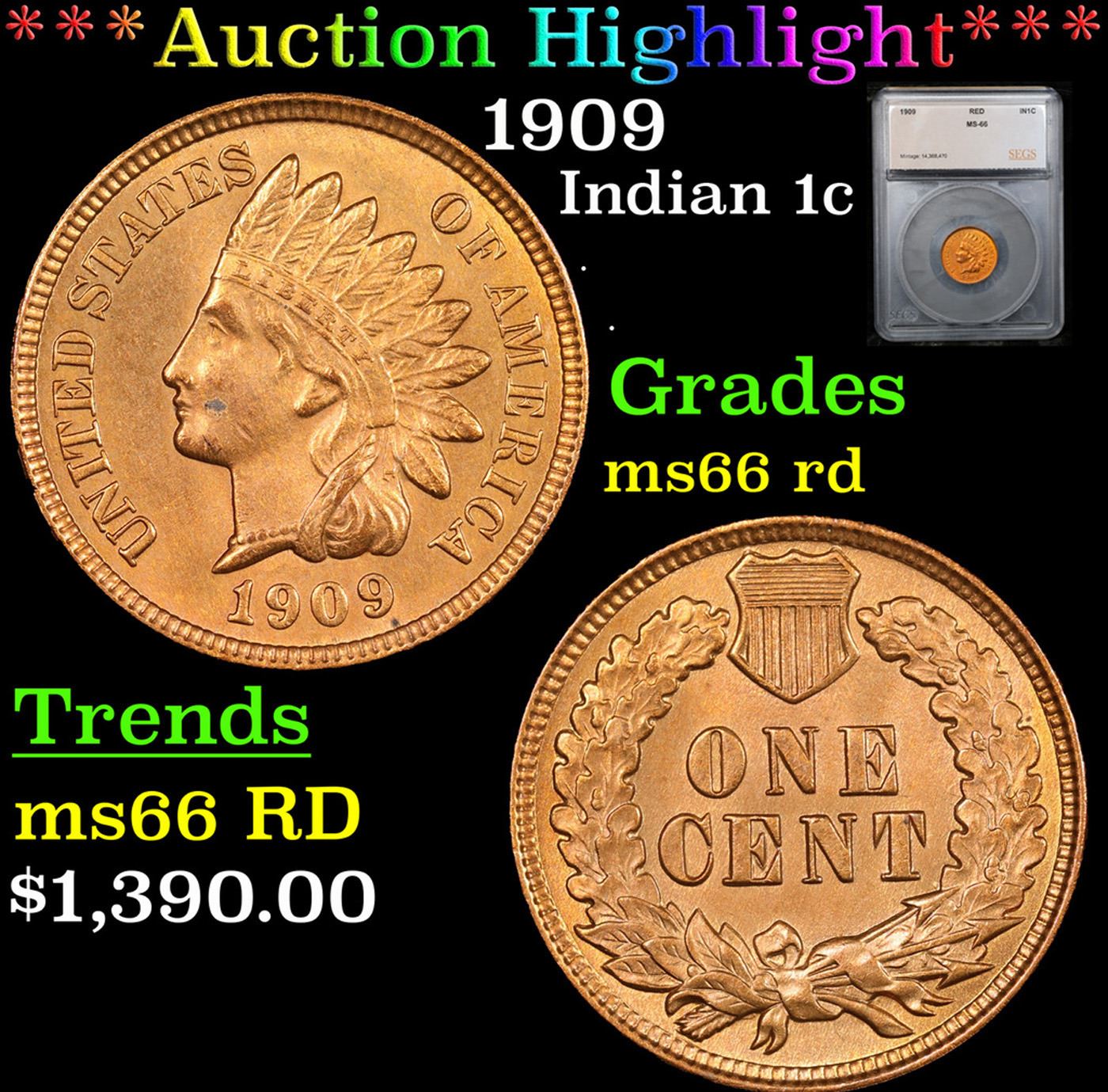 1909 Indian Cent 1c Graded ms66 rd By SEGS.