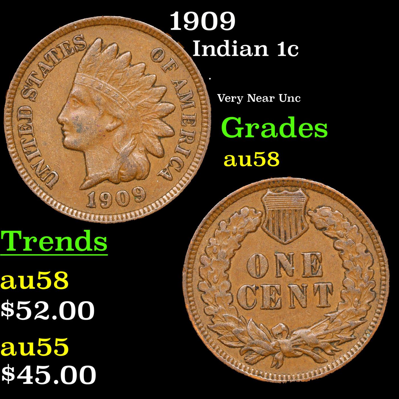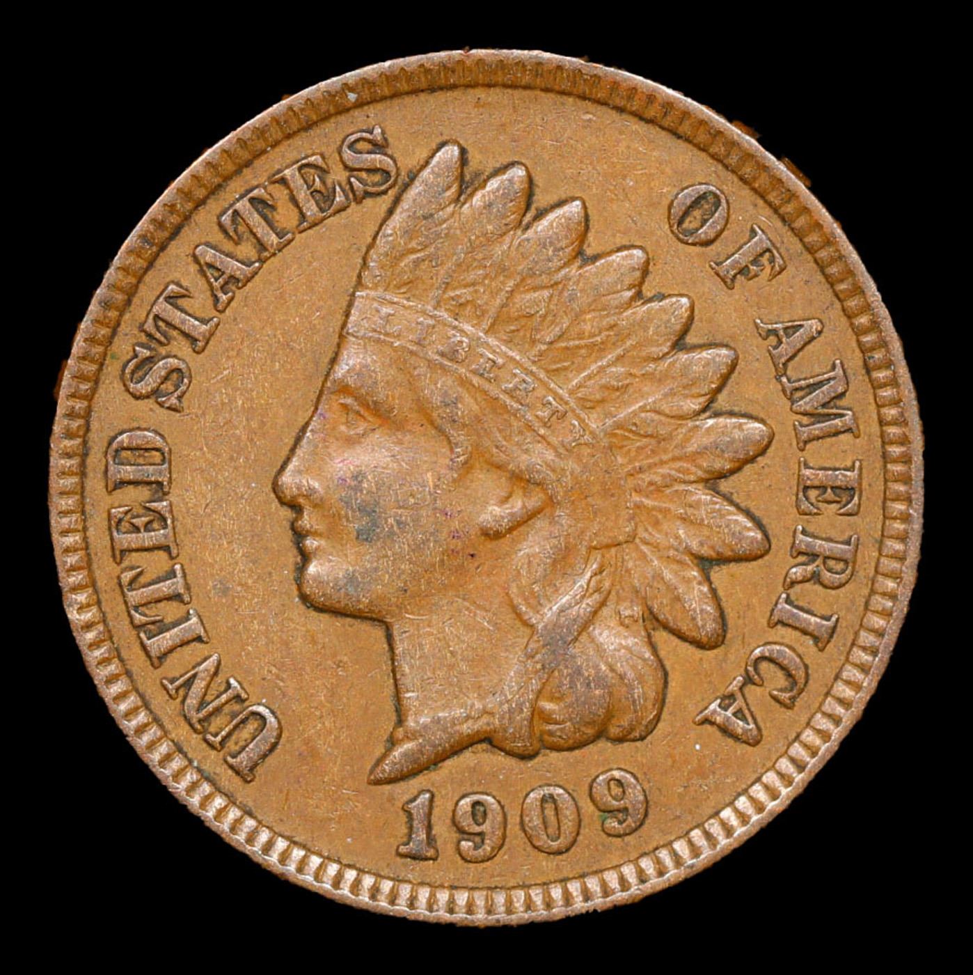 1909 Indian Cent 1c Grades Choice AU/BU Slider.