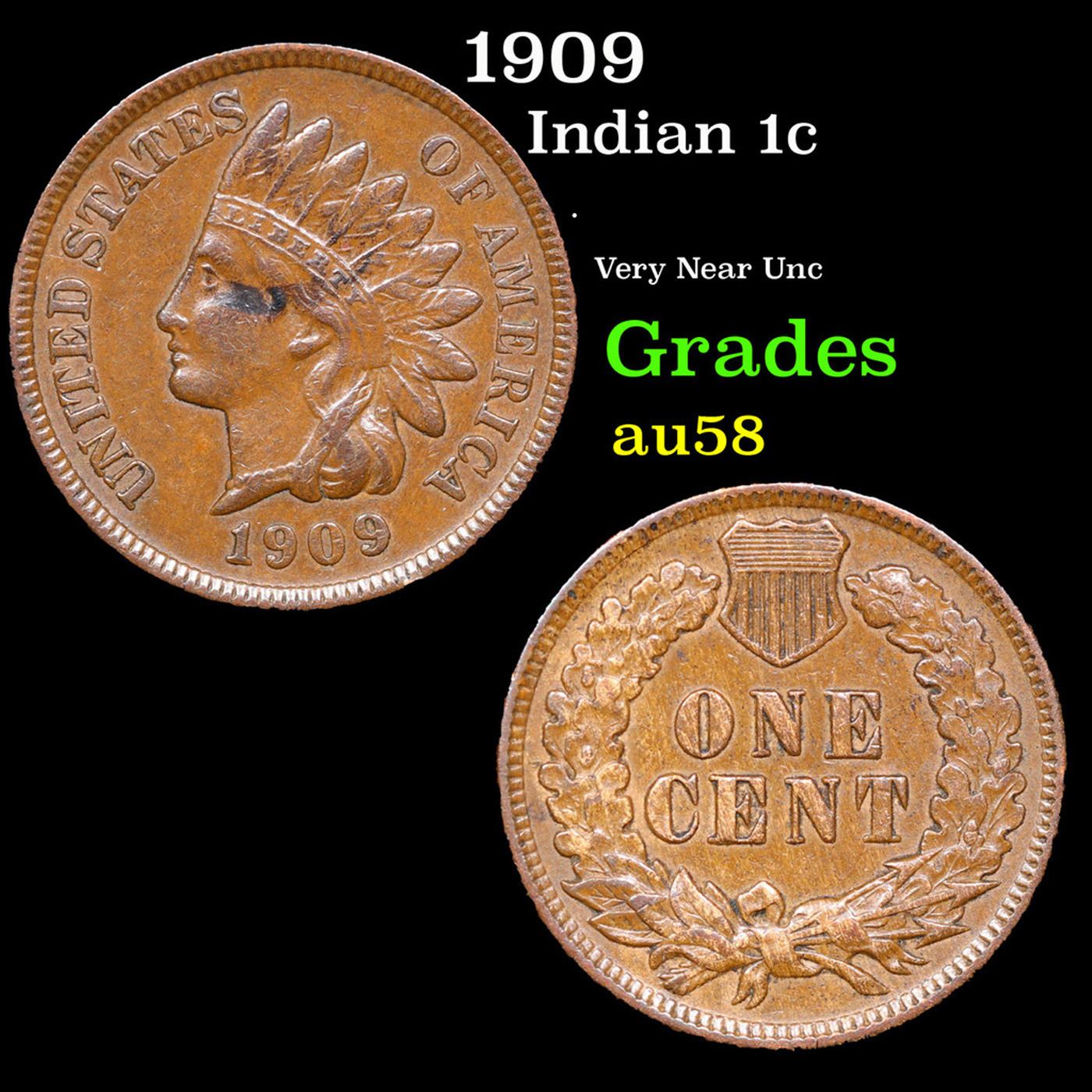 1909 Indian Cent 1c Grades Choice AU/BU Slider.