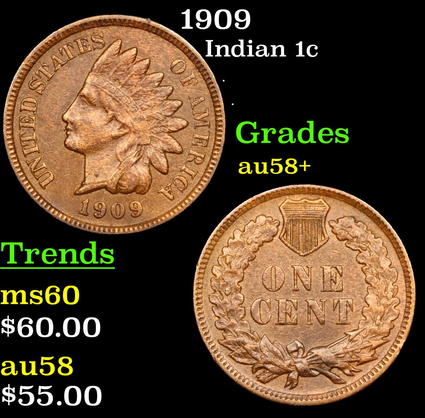 1909 Indian Cent 1c Grades Choice AU/BU Slider+.