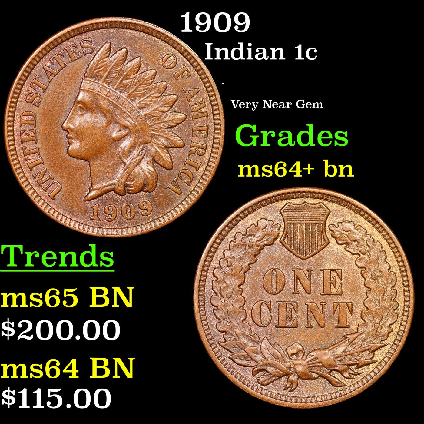 1909 Indian Cent 1c Grades Choice+ Unc BN.