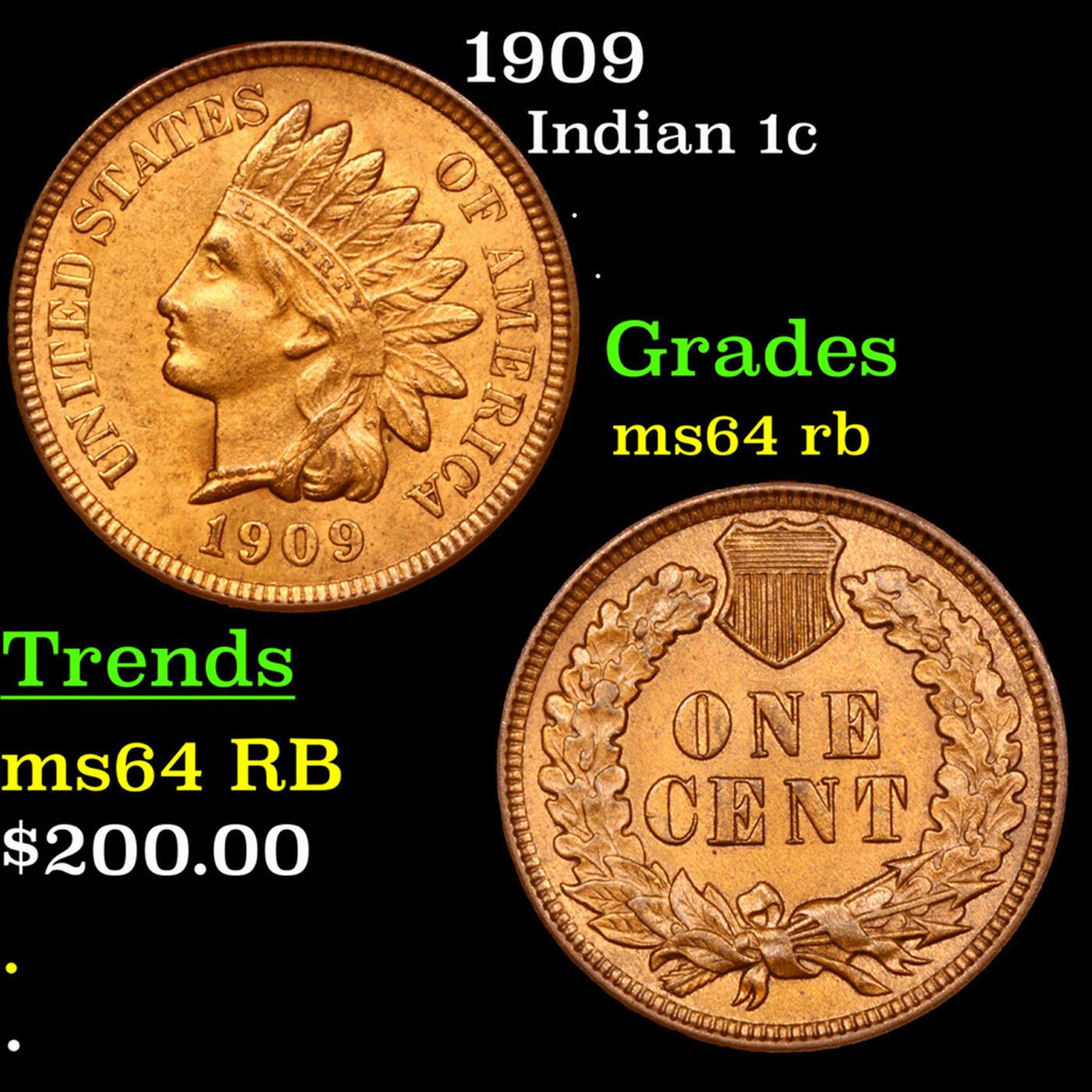 1909 Indian Cent 1c Grades Choice Unc RB.