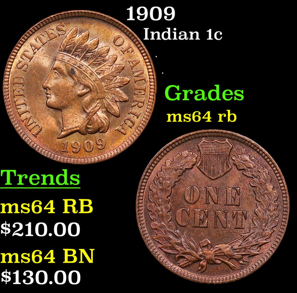 1909 Indian Cent 1c Grades Choice Unc RB.