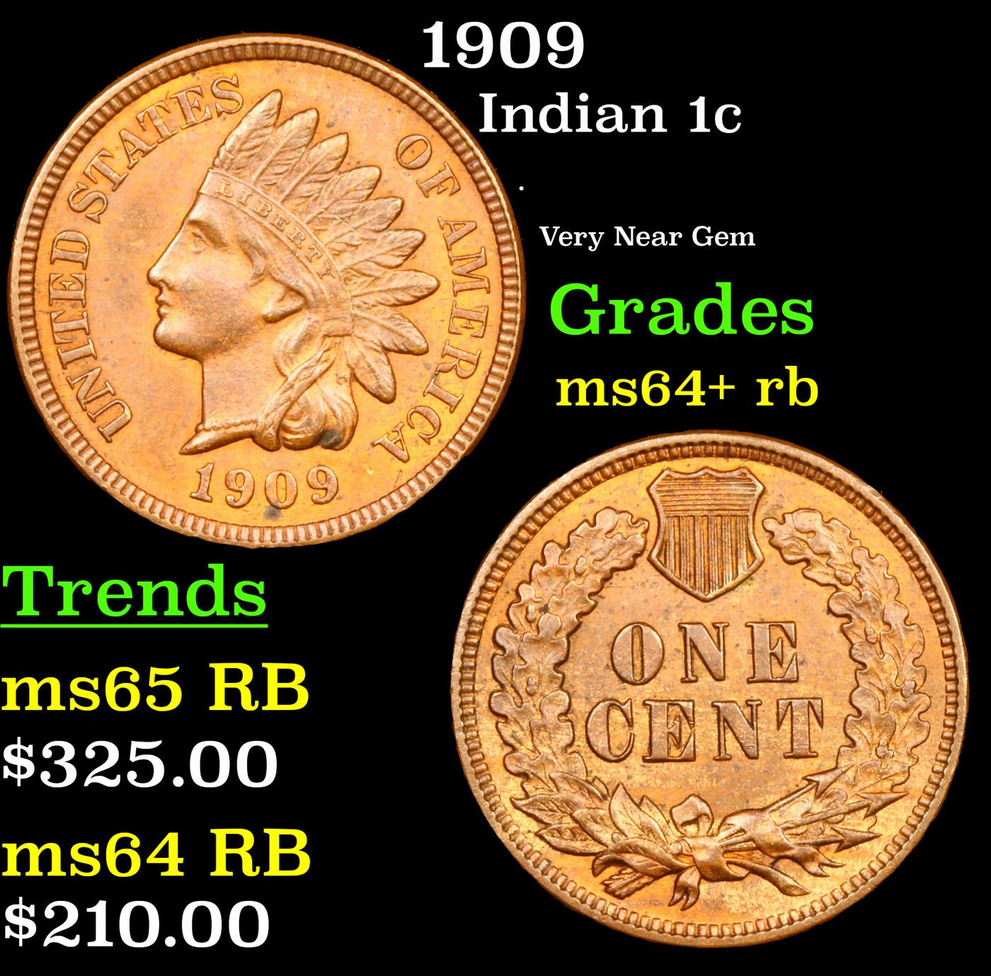 1909 Indian Cent 1c Grades Choice+ Unc RB.