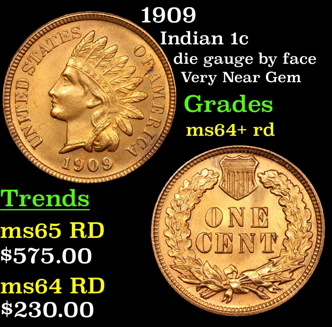 1909 die gauge by face Very Near Gem Indian Cent 1c Grades Choice+ Unc RD.