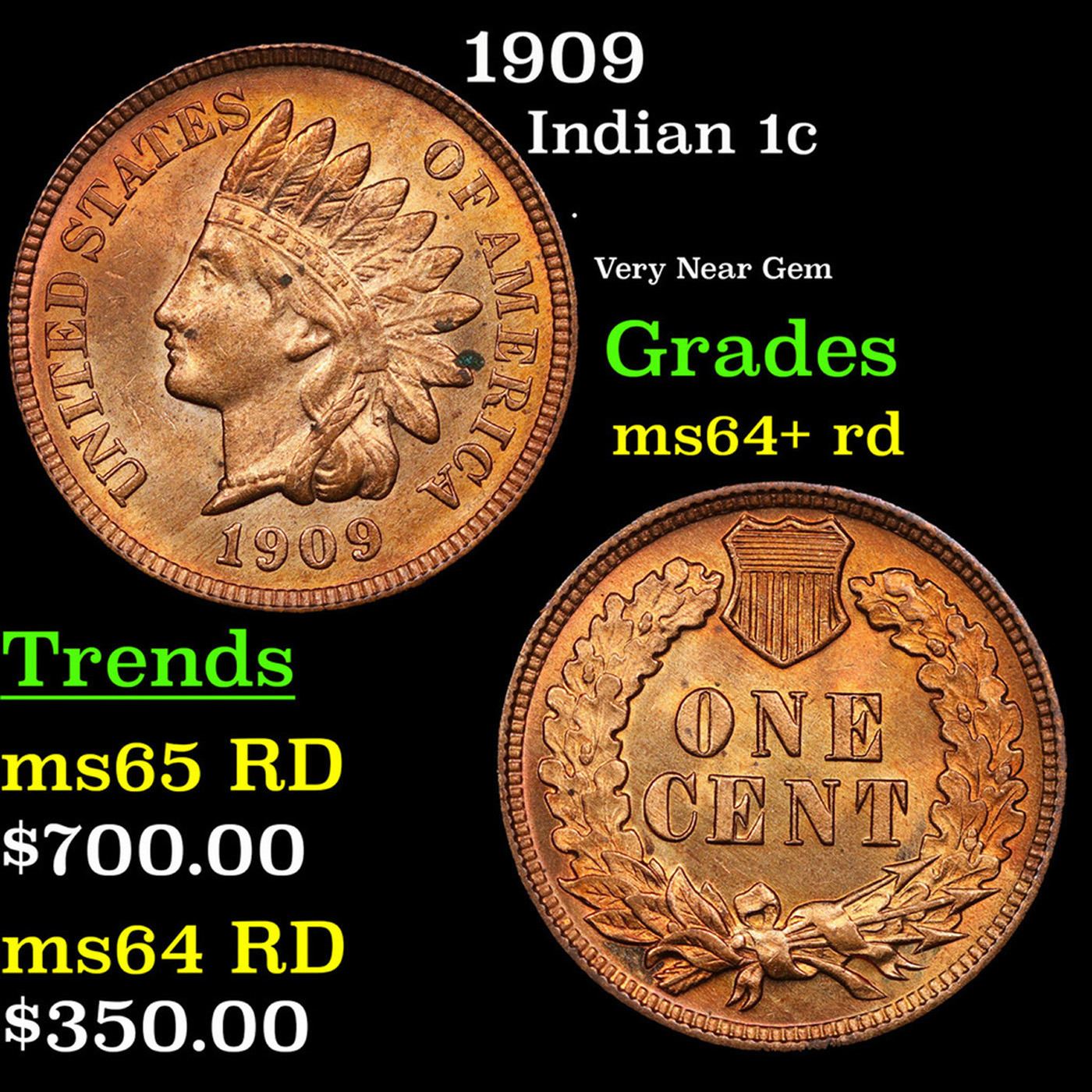 1909 Indian Cent 1c Grades Choice+ Unc RD.