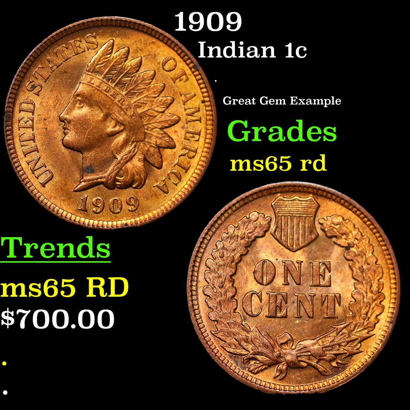 1909 Indian Cent 1c Grades GEM Unc RD.