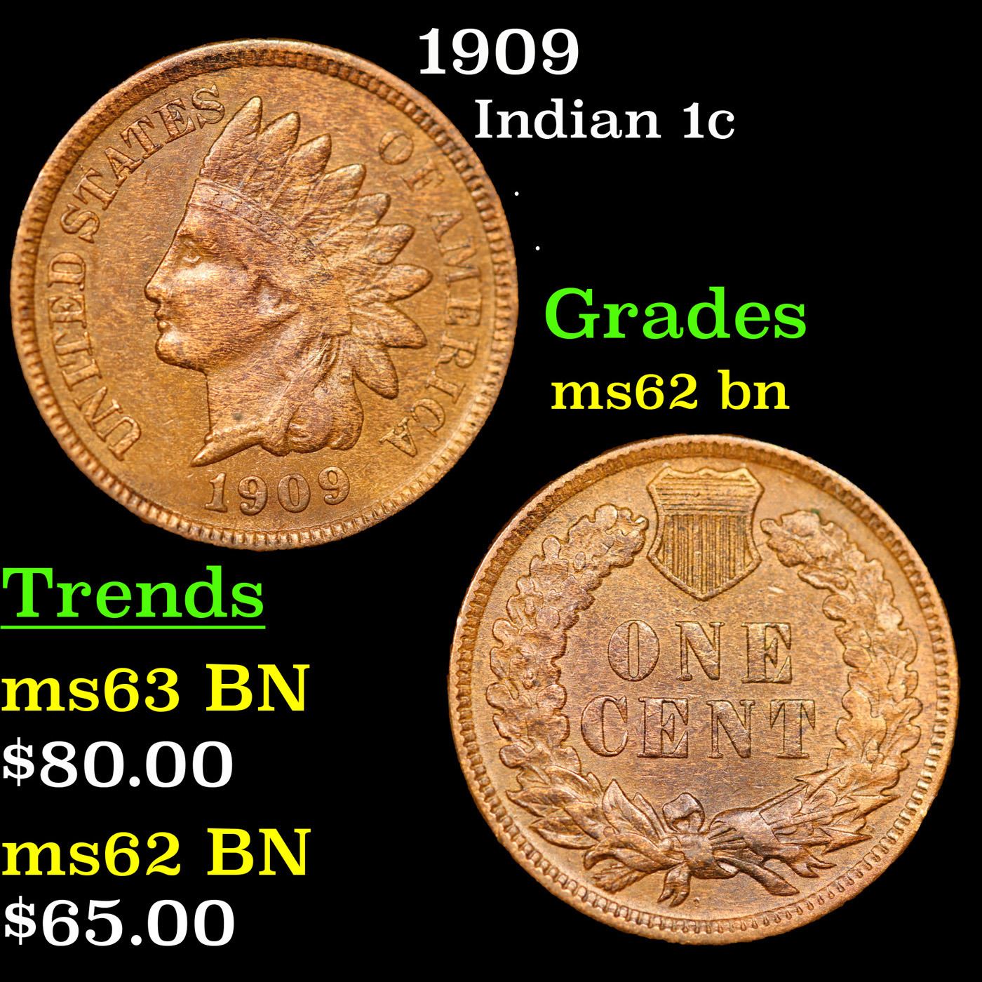 1909 Indian Cent 1c Grades Select Unc BN.