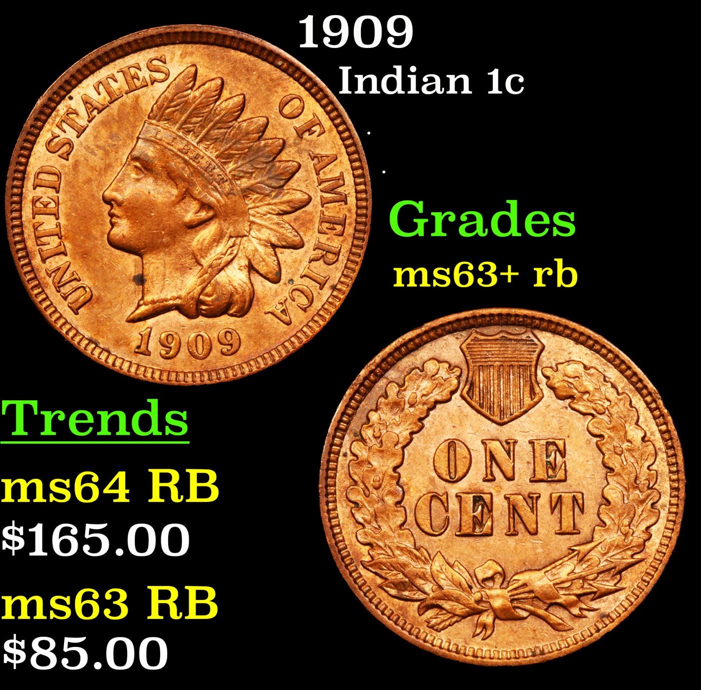 1909 Indian Cent 1c Grades Select+ Unc RB.