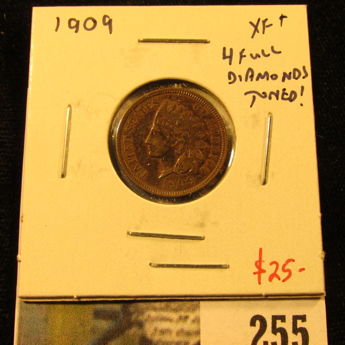 1909 Indian Cent, XF+ toned, 4 full diamonds, value $25