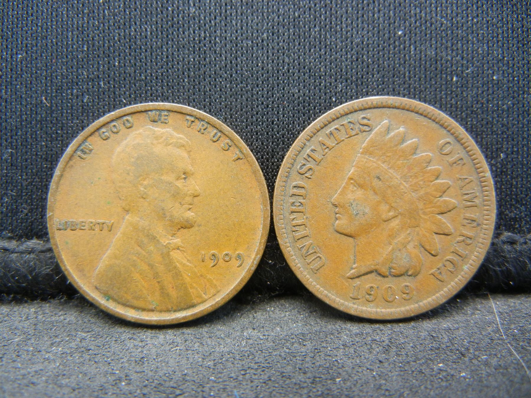 1909 Indian Cent and 1909-VDB Lincoln Cent.