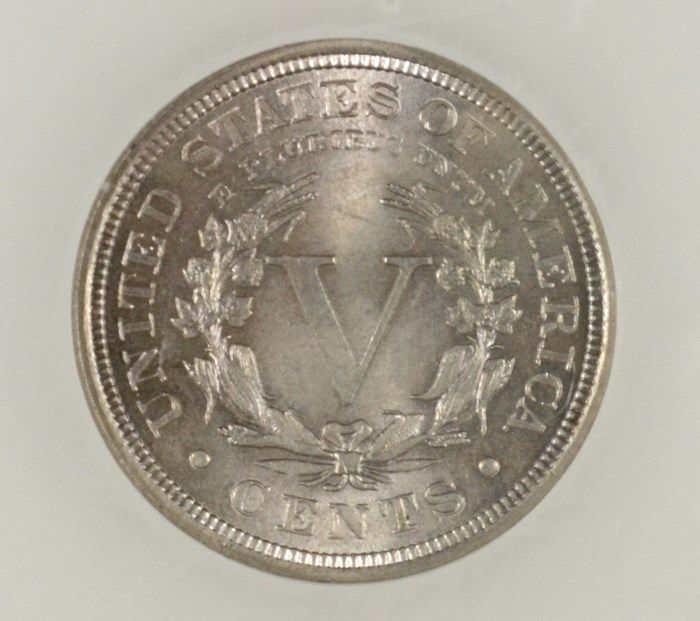 A SUPERB LIBERTY "V" NICKEL; FOR YOUR HIGH QUALITY SET, ESTIMATE $675.00 TO $720.00