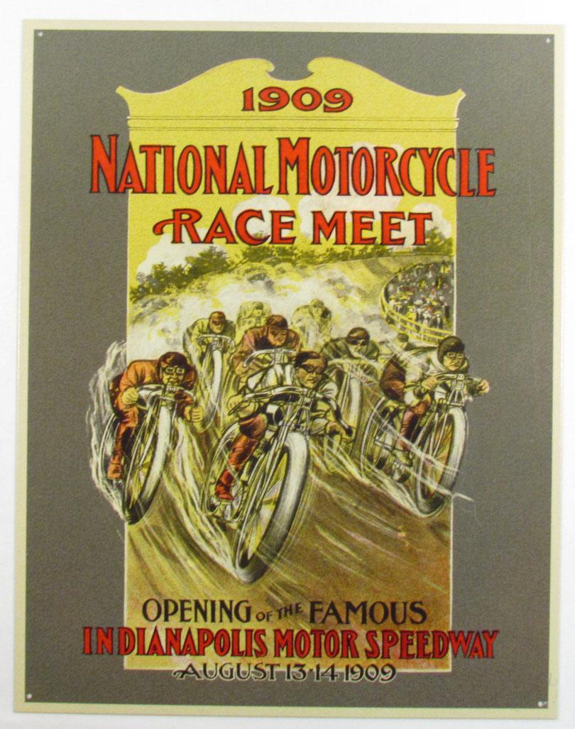 1909 NATIONAL MOTORCYCLE RACE MEET METAL SIGN - Approx. 12.5" by 16"