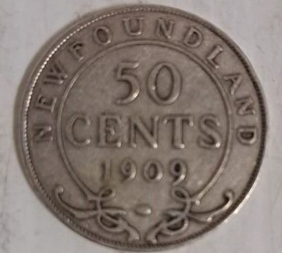 1909 NEWFOUNDLAND HALF DOLLAR SILVER
