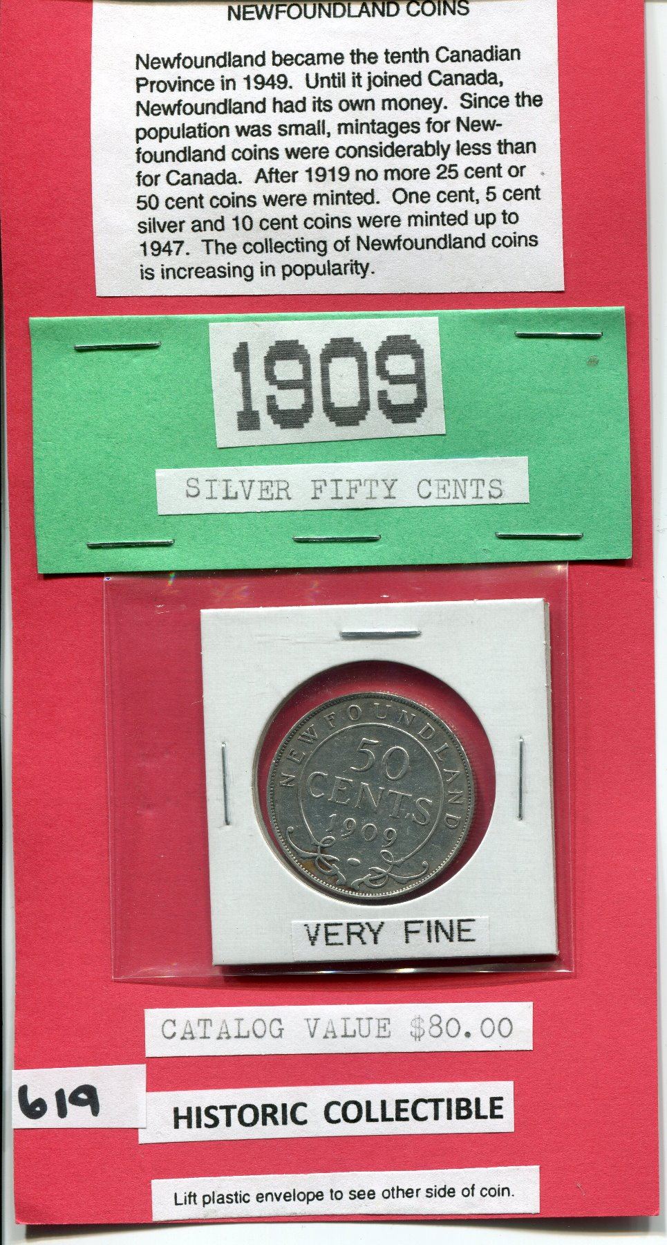 1909 NEWFOUNDLAND SILVER 50 CENT PC HISTORIC COLLECTIBLE