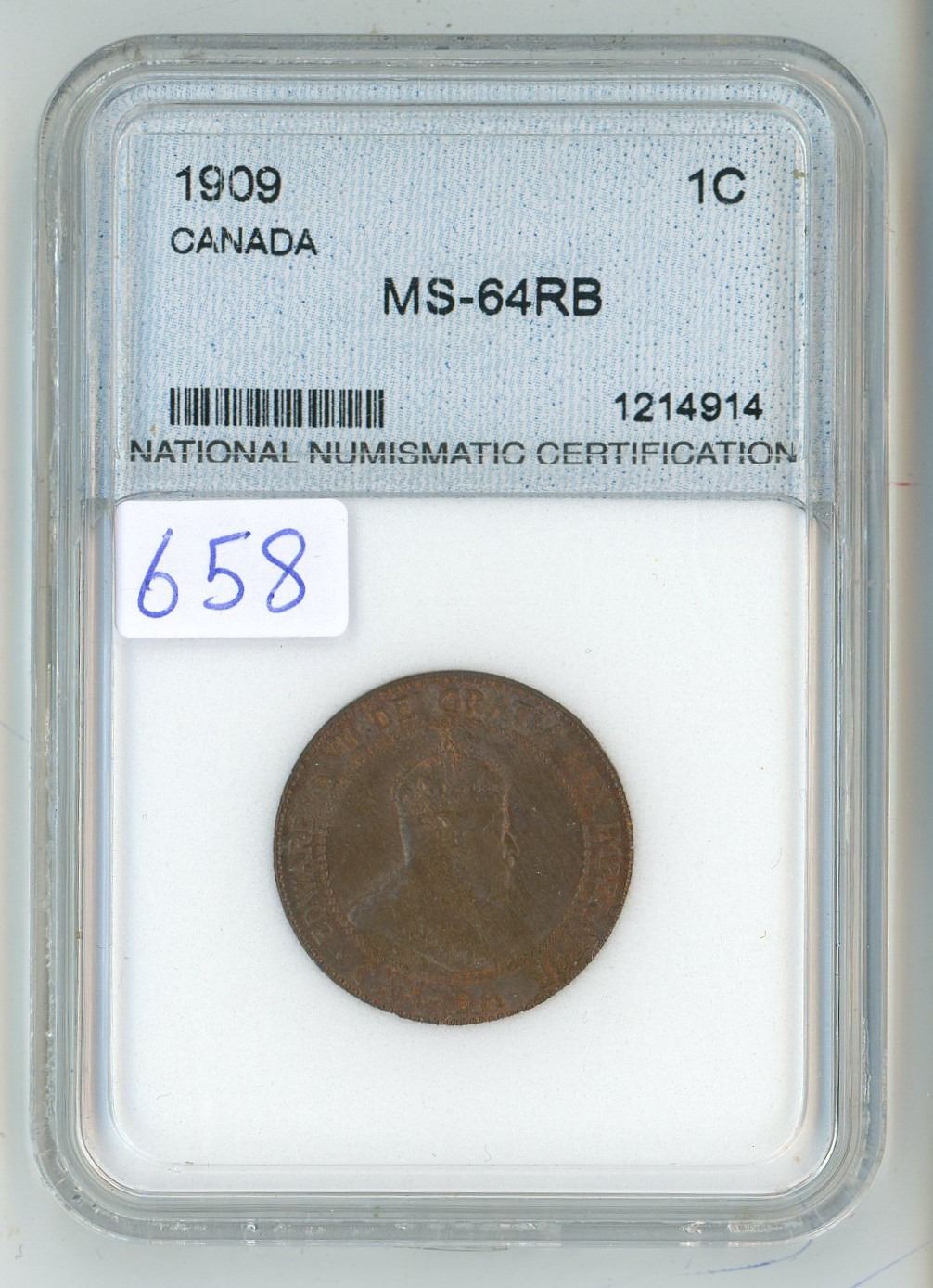 1909 NNC Graded, Canadian large cent coin - MS-64RB