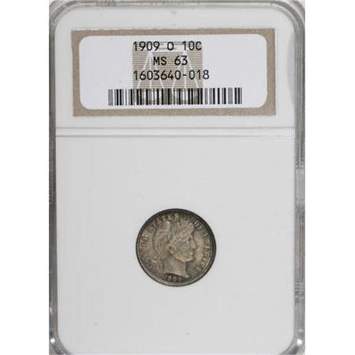 <B>1909-O 10C MS63 NGC.</B></I> NGC Census: (19/43). PCGS Population (18/47). Mintage: 2,287,000. Numismedia Wsl. Price for NGC/PCGS coin in MS63: $460. (#4852)<BR><BR><B>Coin Engraver:</B> Charles E. Barber<BR><BR><b>Shipping:</b> Coins & Currency (<a target="_blank" href="http://www.heritageauctions.com/common/shipping.php">view shipping information</a>)
