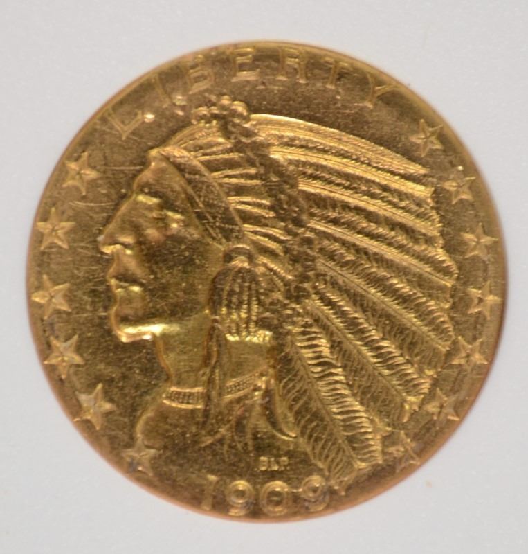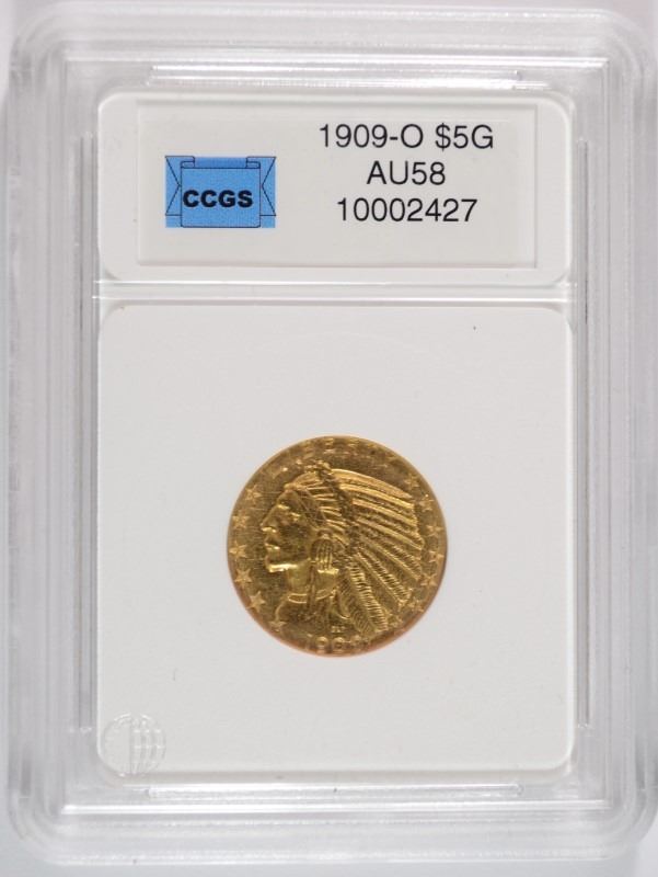 1909-O $5.00 INDIAN GOLD, THE KEY TO THE SET, CCGS GRADED AU/UNC EXTREMELY RARE