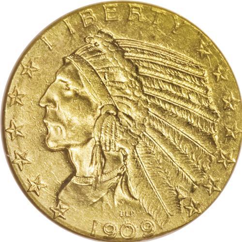 <B>1909-O $5 AU58 NGC.</B></I> The final year of production at the New Orleans facility and the only O-mint gold coin from that year. The newly opened Denver Mint seemingly hastened its demise. Survivors include a reasonable number of AU pieces and, as often seen, the mintmark on this still-lustrous example is only faintly visible.<BR><BR><b>Shipping:</b> Coin/Currency (<a target="_blank" href="http://www.heritageauctions.com/common/shipping.php">view shipping information</a>)