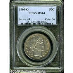 <B>1909-O 50C MS64 PCGS.</B></I> Steel gray with a blush of peripheral gold toning on the obverse and reverse. The surfaces are pleasing for the grade, with no nicks or bumps worthy of note. Fairly well struck for this scarce date. Population: 17 in 64, 9 finer (2/05).