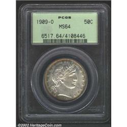 1909-O 50C MS64 PCGS. The New Orleans Mint produced its final Half Dollars, 925,400 coins to be exact, in 1909. Surprisingly for a low mintage branch mint issue in this series, the '09-O is not all that difficult to locate in circulated grades through the XF level. AU and Mint State coins, however, are elusive. This well preserved representative displays mottled crescents of rainbow toning around the peripheries. Boldly struck for a product of the New Orleans Mint, and noticeable free of bothersome abrasions. Soft slate-gray color overlays the centers.From the Ohio Collection. Important notice: We expect to be auctioning lots at the rate of 200-250 per hour. Sometimes eBay Premier live bid software cannot keep up with that pace, so we strongly recommend that you place a realistic proxy bid now as insurance to avoid disappointment. Also please note that all Heritage/CAA lots purchased through eBay Premier carry a 20% Buyer's Premium. Please make sure you read the Terms and Conditions.