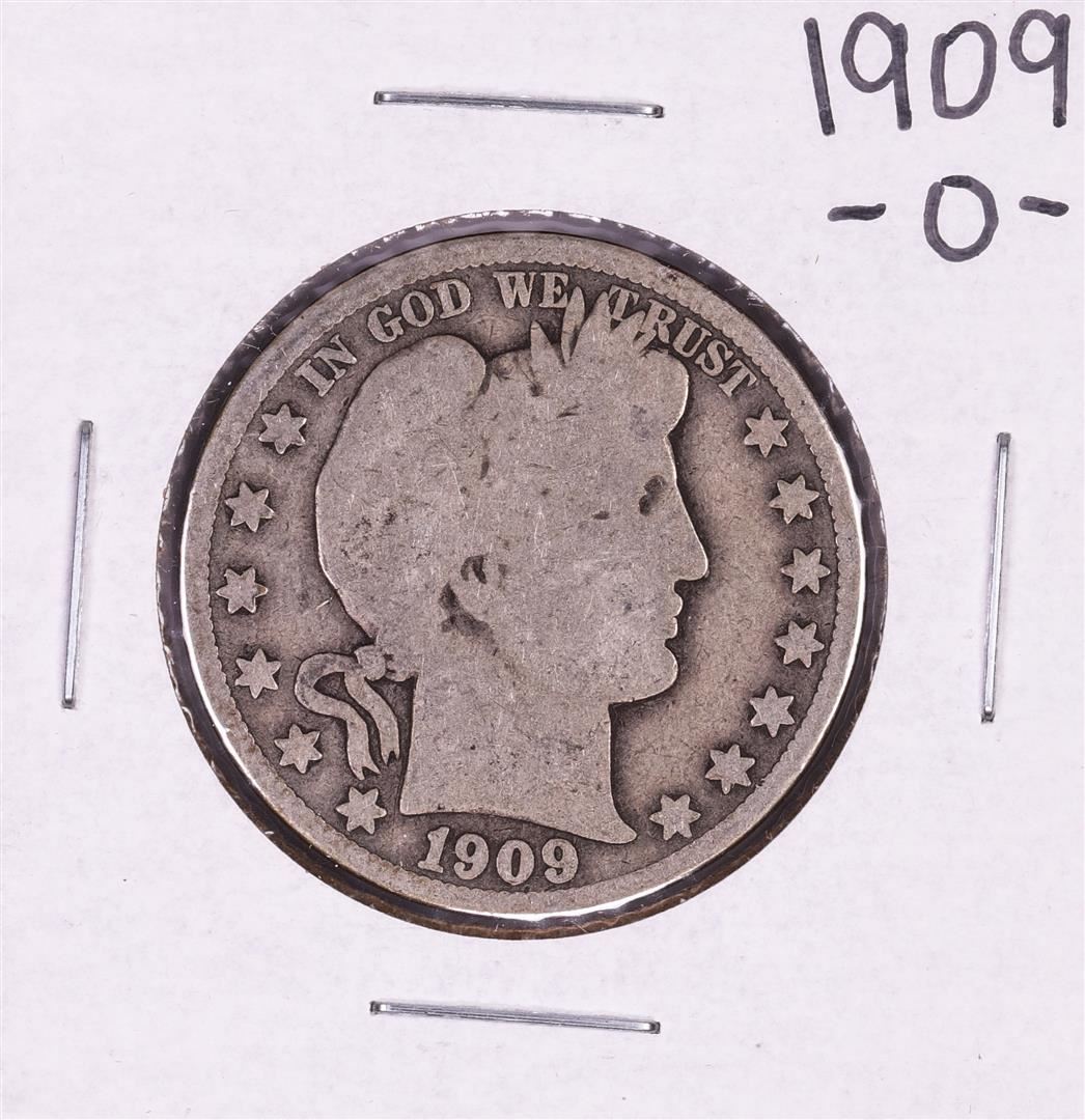 One 1909-O Barber Half Dollar Coin.