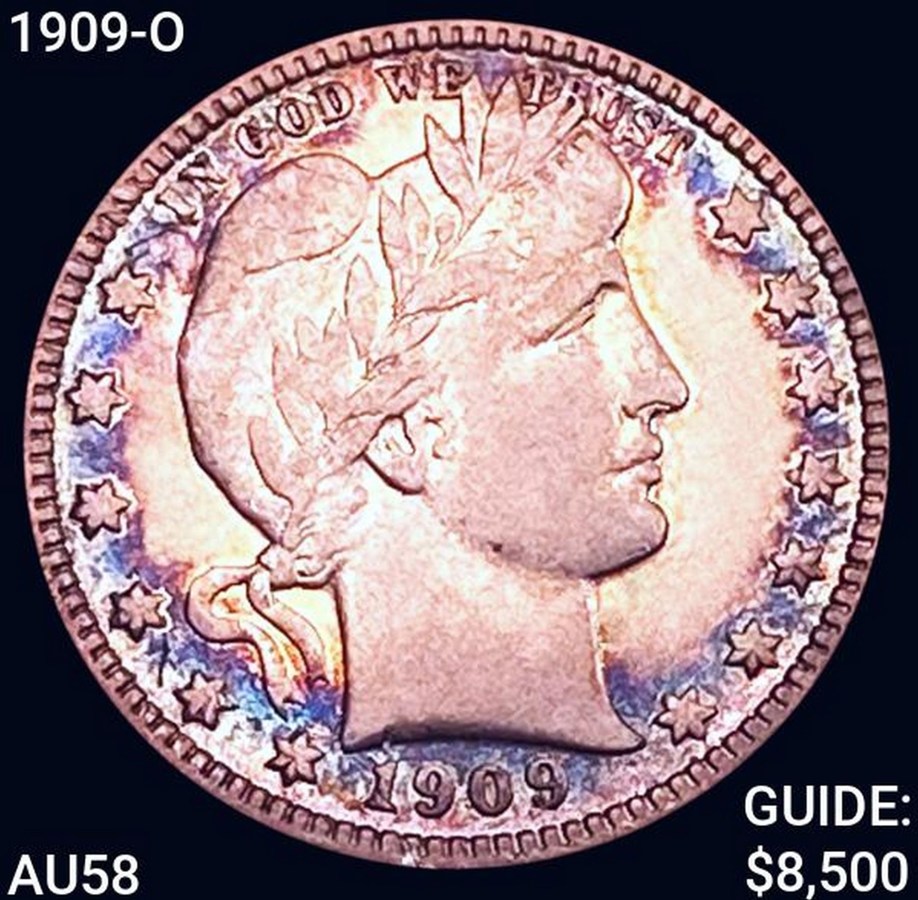 1909-O Barber Quarter CHOICE AU